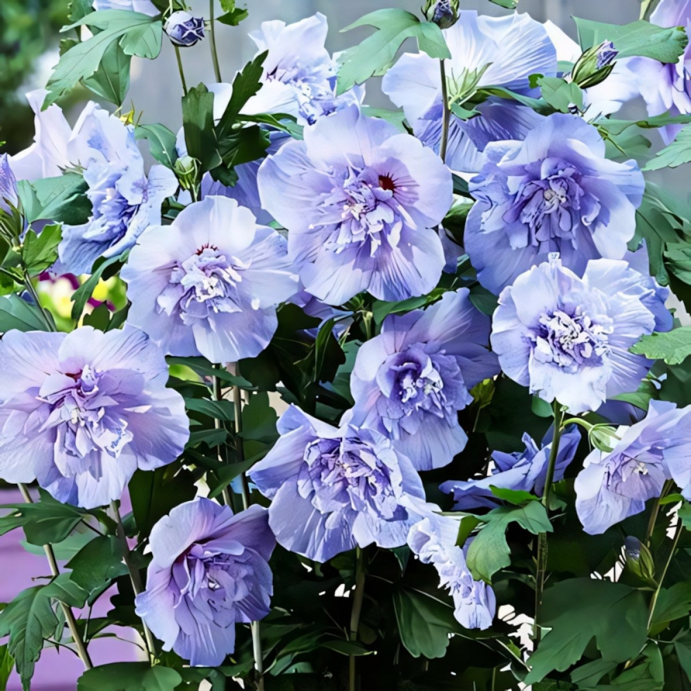 Гибискус Блю Шифон — роскошный махровый сорт с лазурно-голубыми цветами. Диаметр в роспуске нередко достигает 30−35 см. Растение называют «китайской розой» или «болотной мальвой». На садовом участке Hibiscus Blue Chiffon смотрится экзотично и нереально прекрасно.