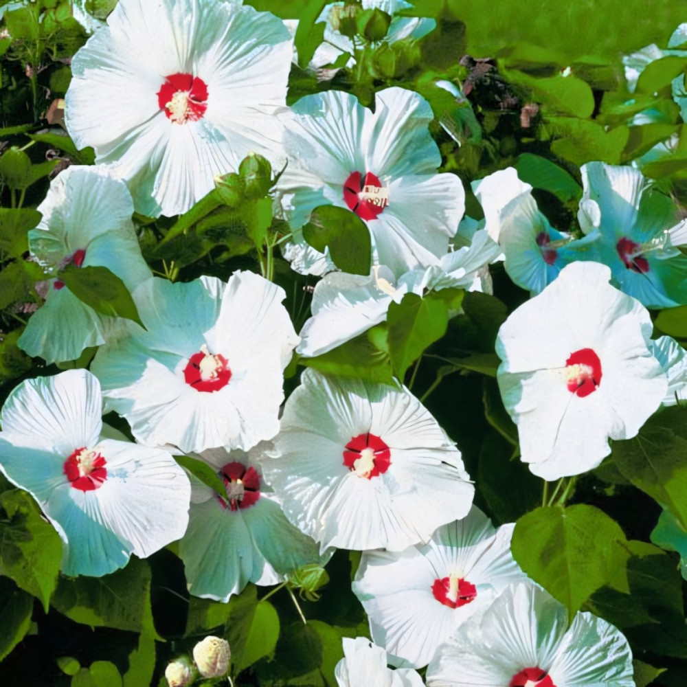 Гибискус Олд Елла - многолетнее, обильноцветущее растение семейства Мальвовых. Огромные сливочного оттенка цветы с красной пуговкой посерединке выглядят очень эффектно и имеют какое-то магнетическое притяжение.