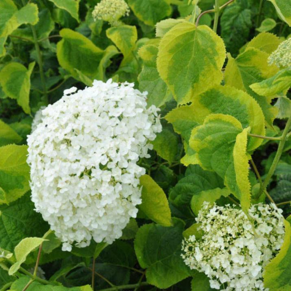 Пестролистная форма от сорта «Annabelle». Куст высотой 120-150 см и шириной 90-150 см с округлой кроной и сильными, прочными побегами. Листва весь сезон декоративная, яркая, зелено-золотисто-желтая. Соцветия крупные, симметричные, диаметром до 25 см. Цветки зеленовато-кремово-белые. Обильное цветение на побегах текущего года. Очень эффектна в одиночных и групповых посадках. Рекомендуется весенняя обрезка побегов. Зимостойкость высокая.