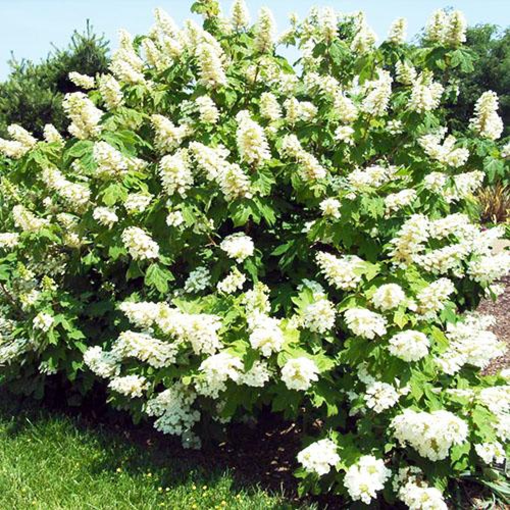 Уход за гортензией: Уход за гортензией сводится прежде всего к правильному поливу, своевременной подкормке, обрезке и рыхлению. Если делать все правильно, то кусты будут пышными, а соцветия крупными и яркими. На первом году молодые саженцы поливают 2 раза в неделю. Регулярно проводят санитарную обрезку, удаляя старые засохшие или примерзшие, пораженные побеги и бутоны, корни. На всем периоде вегетации нужно полоть и рыхлить землю, удалять вокруг сорняки, которые могут занести болезни культуре. Для защиты от вредителей и болезней, растение опрыскивают раствором медного купороса – на 10-литровое ведро – 15 г сухого вещества. Весной обрабатывают бордосской жидкостью, которая отлично борется с заболеваниями. Молодые саженцы на первом году не подкармливают, а со второго сезона обязательно проводить подкормку удобрениями (органическими, минеральными), минимум 2 раза. В отличие от остальных видов гортензиевых, дуболистная не переносит азотных удобрений, поэтому поливая остальные кусты, ее следует оградить. Почву вокруг кустарника следует замульчировать щепой, опилками или хвоей, чтобы в земле сохранялась влага.