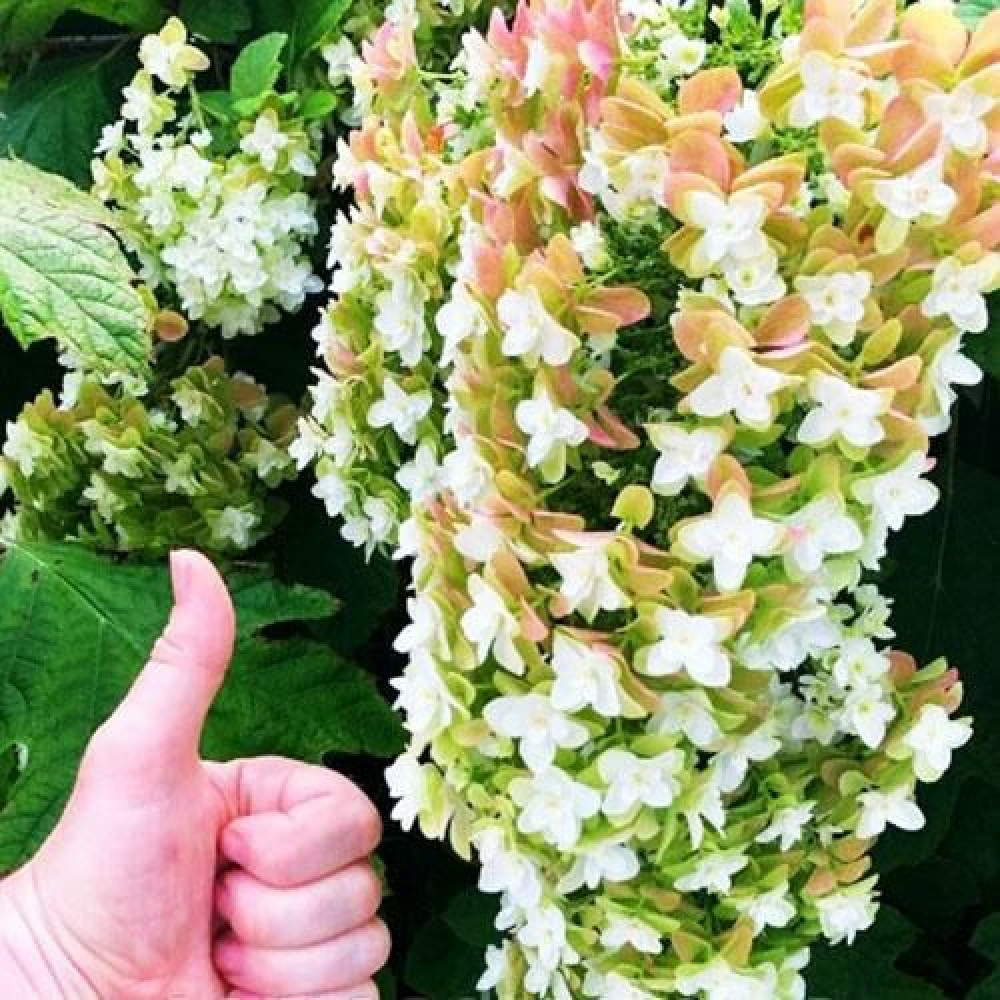 Уход за гортензией: Уход за гортензией сводится прежде всего к правильному поливу, своевременной подкормке, обрезке и рыхлению. Если делать все правильно, то кусты будут пышными, а соцветия крупными и яркими. На первом году молодые саженцы поливают 2 раза в неделю. Регулярно проводят санитарную обрезку, удаляя старые засохшие или примерзшие, пораженные побеги и бутоны, корни. На всем периоде вегетации нужно полоть и рыхлить землю, удалять вокруг сорняки, которые могут занести болезни культуре. Для защиты от вредителей и болезней, растение опрыскивают раствором медного купороса – на 10-литровое ведро – 15 г сухого вещества. Весной обрабатывают бордосской жидкостью, которая отлично борется с заболеваниями. Молодые саженцы на первом году не подкармливают, а со второго сезона обязательно проводить подкормку удобрениями (органическими, минеральными), минимум 2 раза. В отличие от остальных видов гортензиевых, дуболистная не переносит азотных удобрений, поэтому поливая остальные кусты, ее следует оградить. Почву вокруг кустарника следует замульчировать щепой, опилками или хвоей, чтобы в земле сохранялась влага.