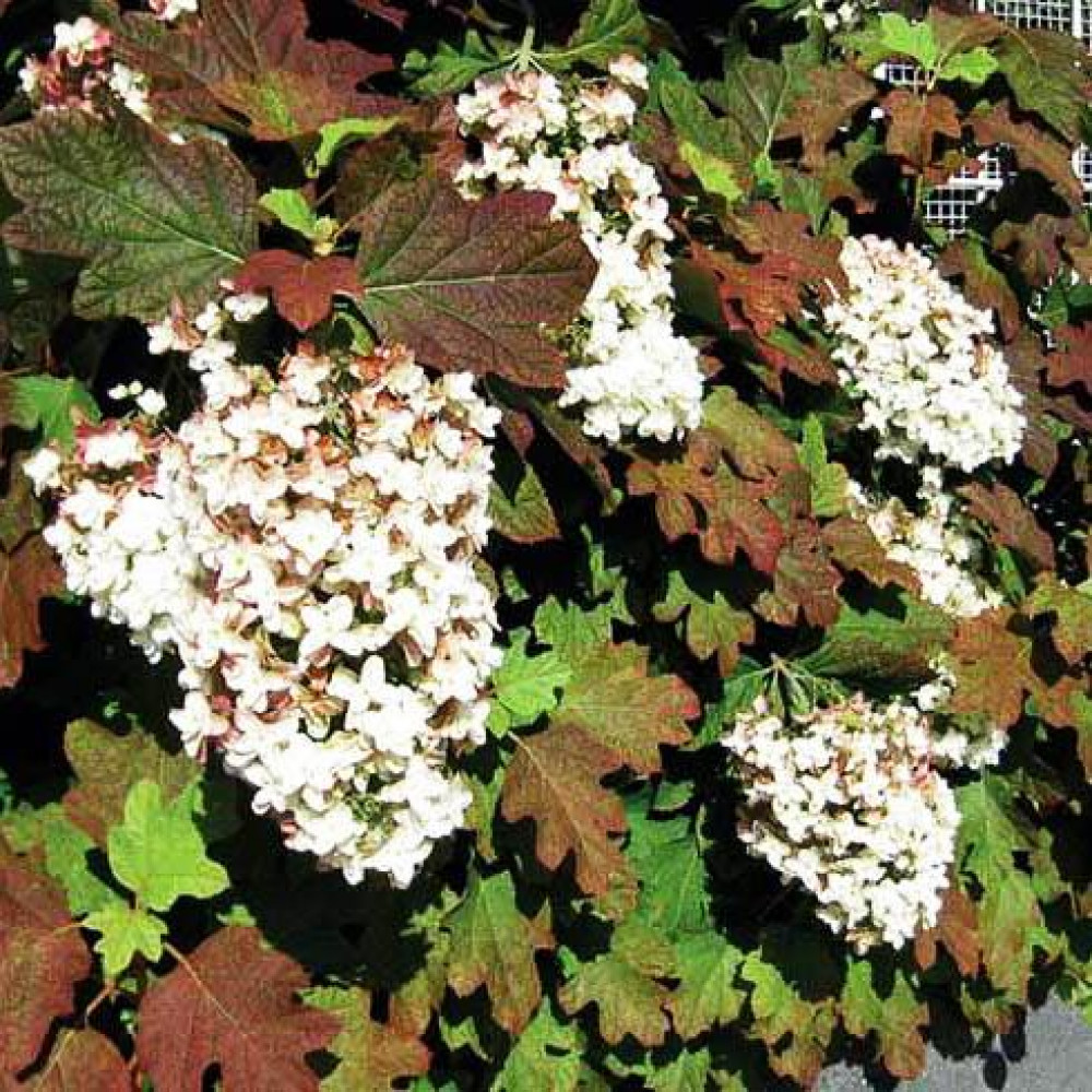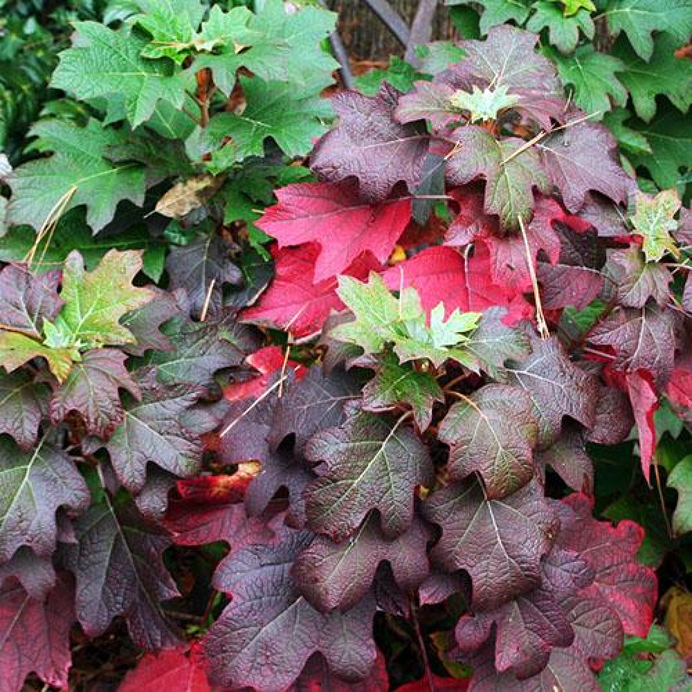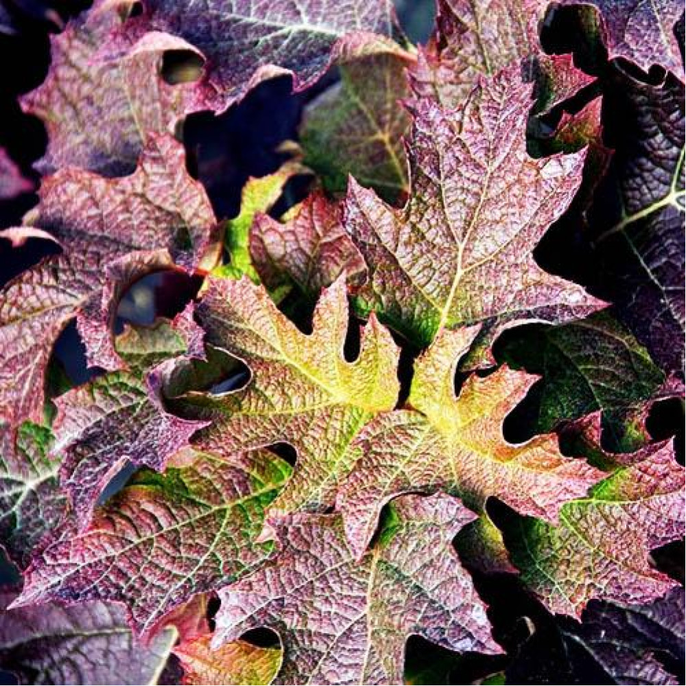 Гортензия дуболистная Black Porch (Блэк Порш) - кустарник до 1.8 м высотой. Листья,в отличие от всех остальных гортензий, не цельные, а 3—7-лопастные, похожие на листья дуба, откуда и произошло видовое название. Листья сверху темно-зеленые и голые, снизу опушенные, до 20 см длиной. К осени листва приобретает фиолетовый, почти черный оттенок. Соцветия метельчатые, до 30 см длиной, с многочисленными белыми плодушими и стерильными цветками величиной 3-4 см. Цветет в июне-августе, плоды созревают в сентябре. Не переносит извести, нуждается во влажной богатой легкой почве. Ценится за форму листьев и за крупные метельчатые соцветия.