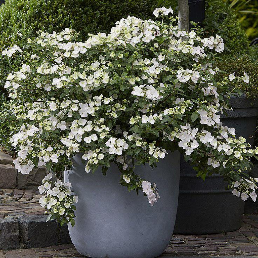 Гортензия крупнолистная Runaway Bride (Ранэвей Брайд) - это одна из самых обильноцветущих и энергичных "ампельных" гортензий! Большинство гортензий дают только одно цветение на конце каждой ветви, а гибридная гортензия крупнолистная Runaway Bride (Ранэвей Брайд) цветет из всех боковых почек по длине каждого стебля. В результате Вы можете увидеть до 6 крупных цветов на каждой ветке, что создает захватывающий зрительный эффект. Чисто белые кружевные цветы с легкими розовыми тенями появляются на гибких ветвях с конца весны и в течение всего лета. Аккуратный, компактный, выносливый, исключительно элегантный кустарник - фантастическое растение для подвесных корзин, контейнеров внутреннего дворика или для смешанных границ. Где бы вы ни посадили его, гортензия крупнолистная Runaway Bride (Ранэвей Брайд) несомненно станет звездным аттракционом. Высота и ширина - 120 см.