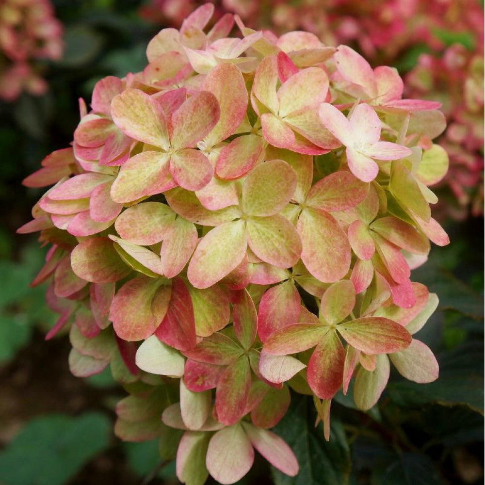 Карликовый кустарник до 1 м высотой и такой же ширины. Побеги жесткие, прямые. Листья яйцевидные, темно-зеленые, с обеих сторон грубо опушенные. Цветки собраны в конусообразные соцветия на верхушках побегов. Соцветия вырастают до 25-30 см в длину, первоначально они светло-зеленые, полностью цветут белоснежными с аквамариновыми верхушками, а в конце лета они розовеют с зелеными и белыми прожилками. Цветение начинается в июле и продолжается до сентября, после цветения цветки высыхают, оставаясь украшением куста в течение осени и зимы.