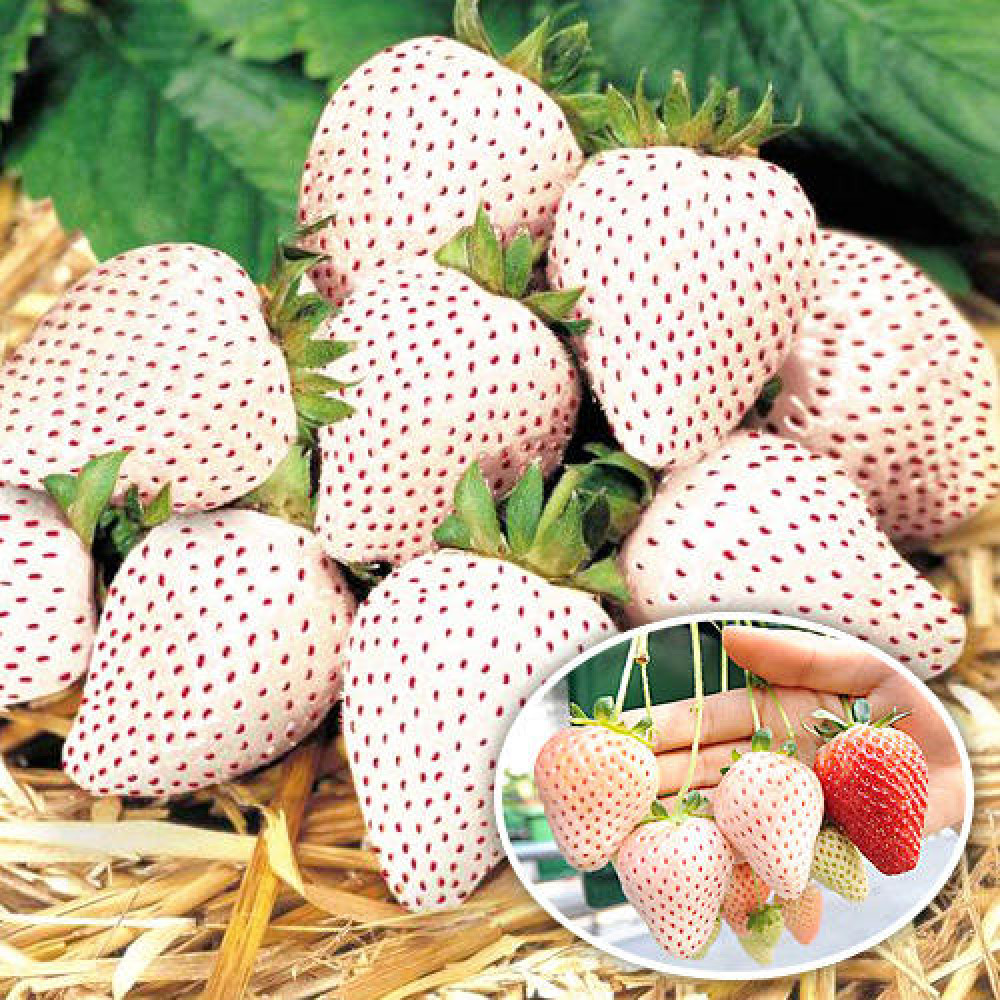 Десертная, нежная и сочная клубника. Кустики, выращенные в тени, дают урожай белоснежных ягод с вкраплениями розовых зерен. Вкус насыщенный, земляничный с ярко выраженным ароматом ананаса. Сорт раннеспелый, первый урожай снимается в конце мая.