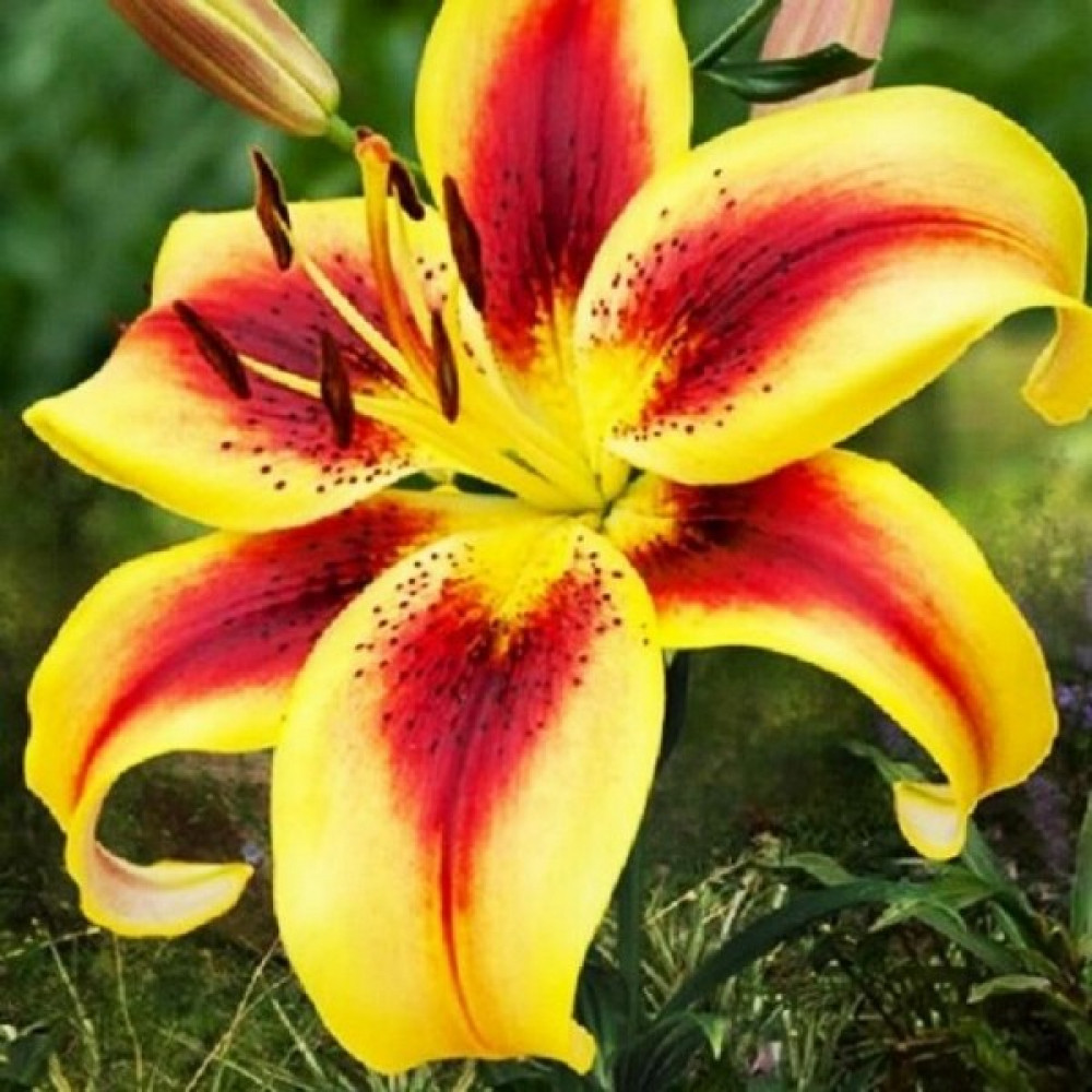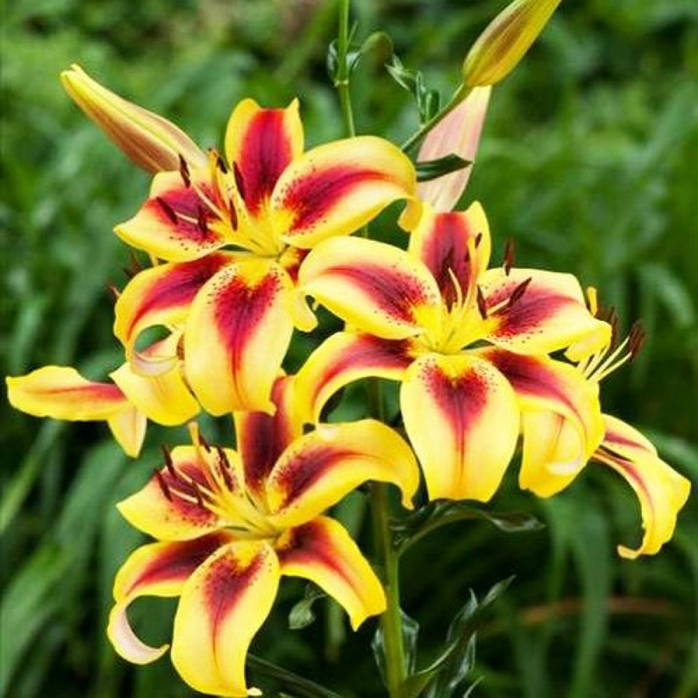 Этому сорту не зря дали такое название – всем своим видом он словно говорит: «Посмотри! Жизнь прекрасна!» Ярко-желтые по краям лепестки в центре становятся тёмно-бордовыми, с обильными крапинками. Когда в июле Viva la Vida (Вива ла Вида) распускается, то это – целое событие: посмотреть на необычный броский цветок и порадоваться его появлению соберется вся семья! Со временем лилий станет много, и тогда они напоминают пестрый калейдоскоп красок среди темно-зеленой листвы. Сорт морозоустойчив, редко болеет – словом, он - настоящая находка для тех, кто ищет красивые, яркие и неприхотливые лилии.