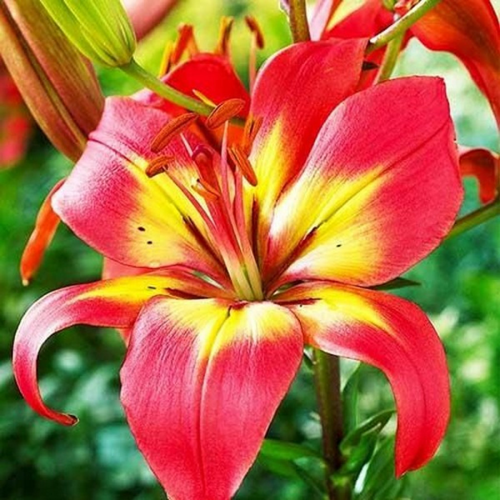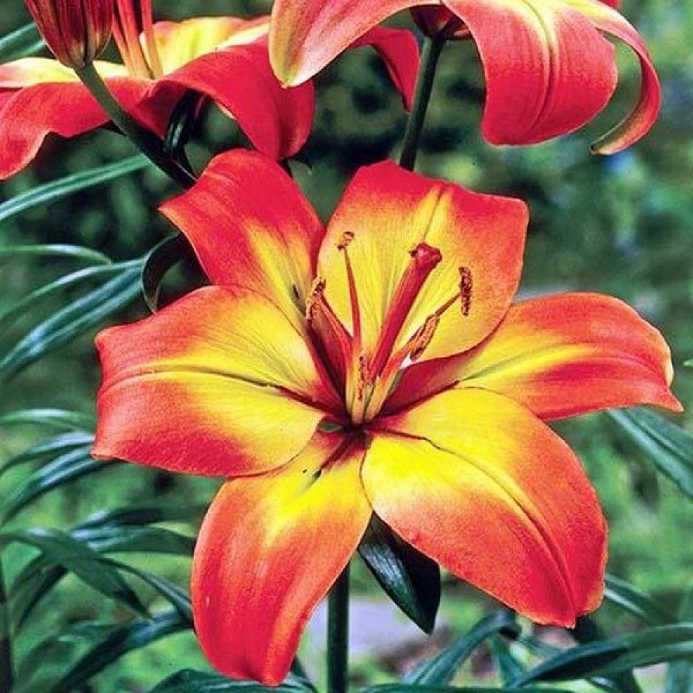 Лилия азиатская Foreve Linda (Форева Линда)-эта прекрасная азиатка — словно вспышка страсти, жаркое пламя, горящее среди зелени сада. Огненные оттенки лепестков, нежно-желтая сердцевинка, пряный стойкий аромат — все это лилия Форевер Линда, настоящая кокетка и жгучая красавица. Она тянется к солнцу, любит свет, и в хороших условиях цветет около месяца. Все это время вас будет окружать сладкое благоухание лилии, тем более если вы срежете цветы и поставите их в вазу в комнате. Форевер Линда может стать центральным элементом самых эффектных цветочных композиций.