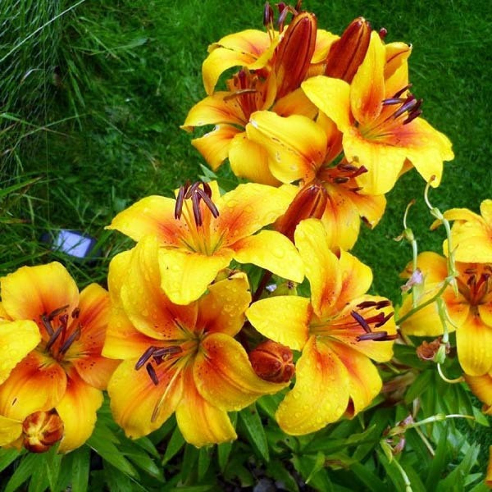 Уход за лилией: Пышных бутонов у лилий можно добиться, соблюдая обычные правила ухода: в первый год лилиям не нужна весенняя подкормка, удобрения вносятся разово за сезон, после цветения. Но это лишь в том случае, если перед посадкой вносилось удобрение. Перед началом цветения высокорослые сорта рекомендуется подвязать. После цветения засохшие бутоны удаляют. Полив умеренный: лучше не долить, чем перелить. Если цветок начал чахнуть и имеются подозрения на перелив – смешайте по столовой ложке речного песка и древесной золы, высыпьте под цветок и не поливайте ближайшую неделю. Полив лилии важно проводить под корень, старайтесь исключить попадание воды на листья, это провоцирует ожоги на солнце и распространение грибковых заболеваний.
