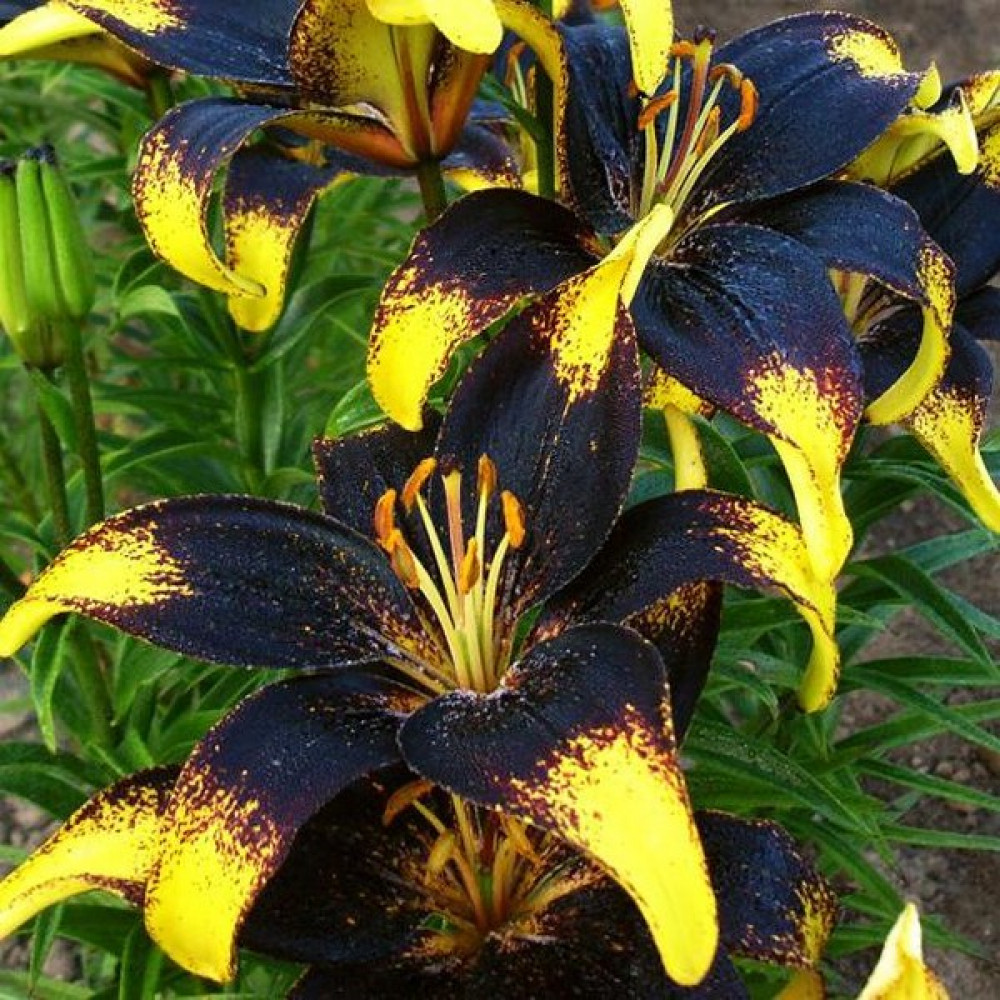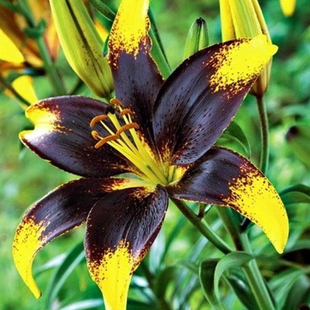 | Период цветенияиюнь-июль | Стандарт поставкиЛуковица в торфе | Цвет цветкачерный, желтый |