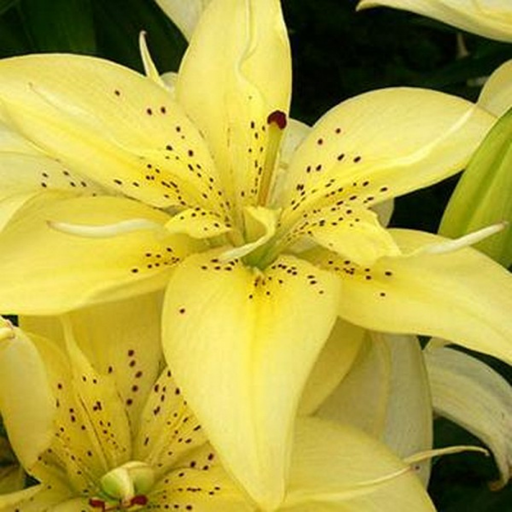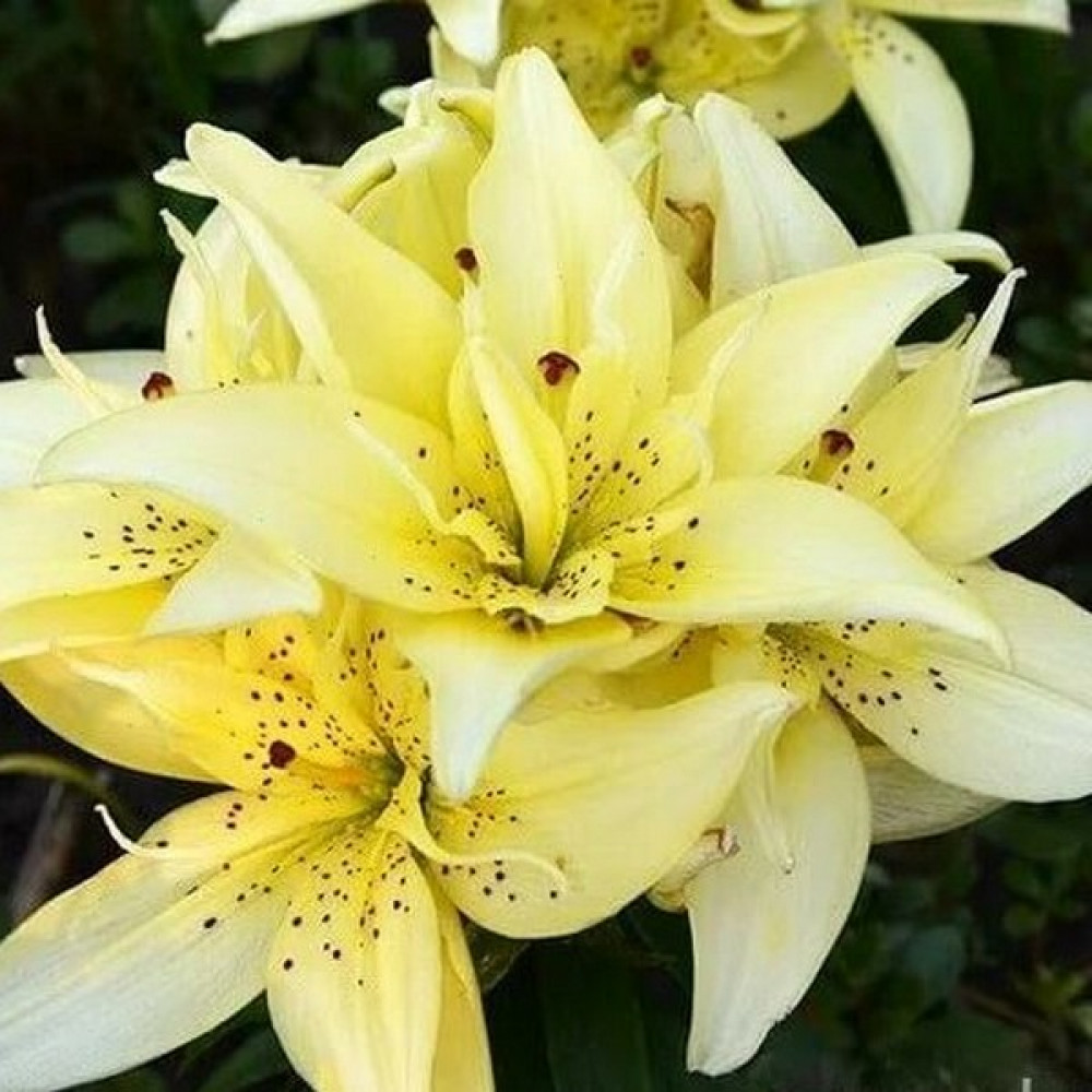 Лилия азиатская Mountain Joy (Маунтейн Джой)-относится к азиатским низкорослым гибридам. Цветки диаметром 14 см, ванильные с бордовым редким крапом, растущие вверх и в бок. Лилия зацветает в конце июня-первой половине июля. Высота растения 40 см. Время посадки осенью - август-сентябрь или весной - в мае. Глубина посадки - 15-20 см. Расстояние между луковицами - 25-35 см. Расположение для посадки - открытые и затенённые места. Растение требует укрытия в первый год. Предпочитает нейтральную или слабокислую хорошо дренированную почву. Лилия азиатская Majestic Joy (Маджестик Джой) неприхотливая, устойчивая к грибным заболеваниям, зимостойкая. Размножается луковичками - детками и луковичными чешуйками.