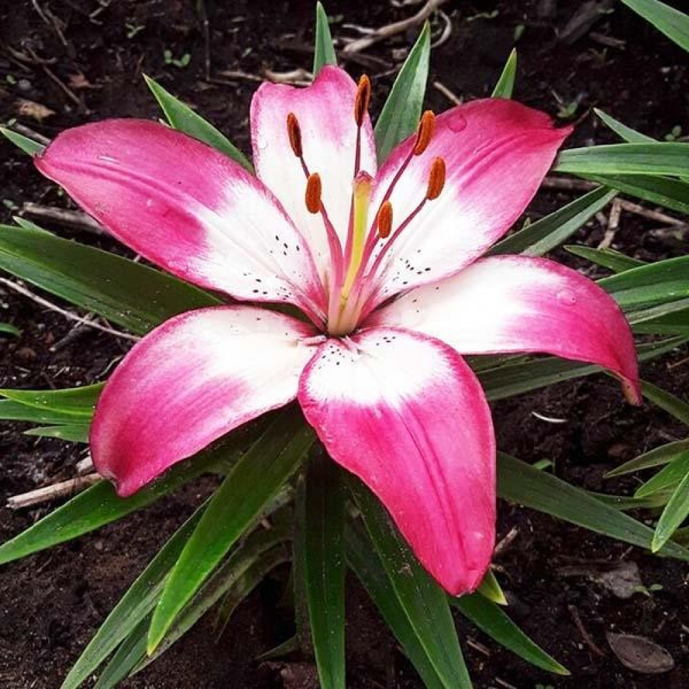 | Стандарт поставкиЛуковица в торфе | Цвет цветкатемно-розовый с кремово-белым центром |