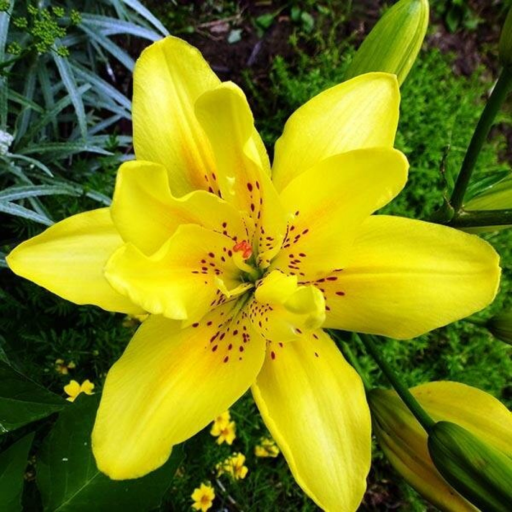 Уход за лилией: Пышных бутонов у лилий можно добиться, соблюдая обычные правила ухода: в первый год лилиям не нужна весенняя подкормка, удобрения вносятся разово за сезон, после цветения. Но это лишь в том случае, если перед посадкой вносилось удобрение. Перед началом цветения высокорослые сорта рекомендуется подвязать. После цветения засохшие бутоны удаляют. Полив умеренный: лучше не долить, чем перелить. Если цветок начал чахнуть и имеются подозрения на перелив – смешайте по столовой ложке речного песка и древесной золы, высыпьте под цветок и не поливайте ближайшую неделю. Полив лилии важно проводить под корень, старайтесь исключить попадание воды на листья, это провоцирует ожоги на солнце и распространение грибковых заболеваний.