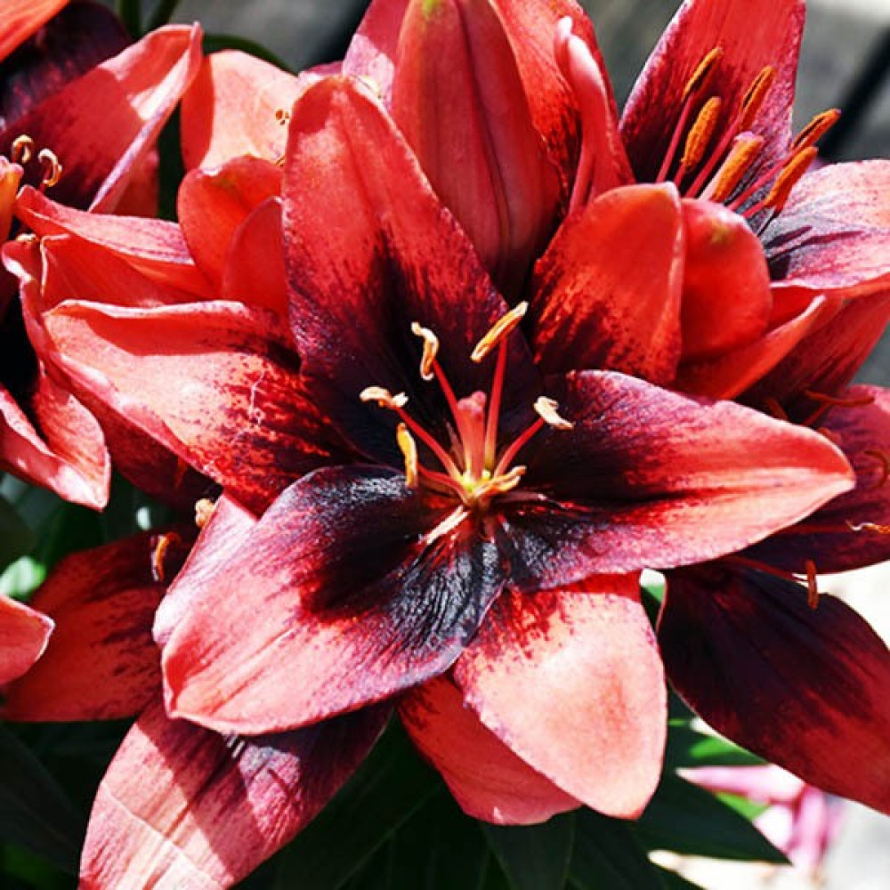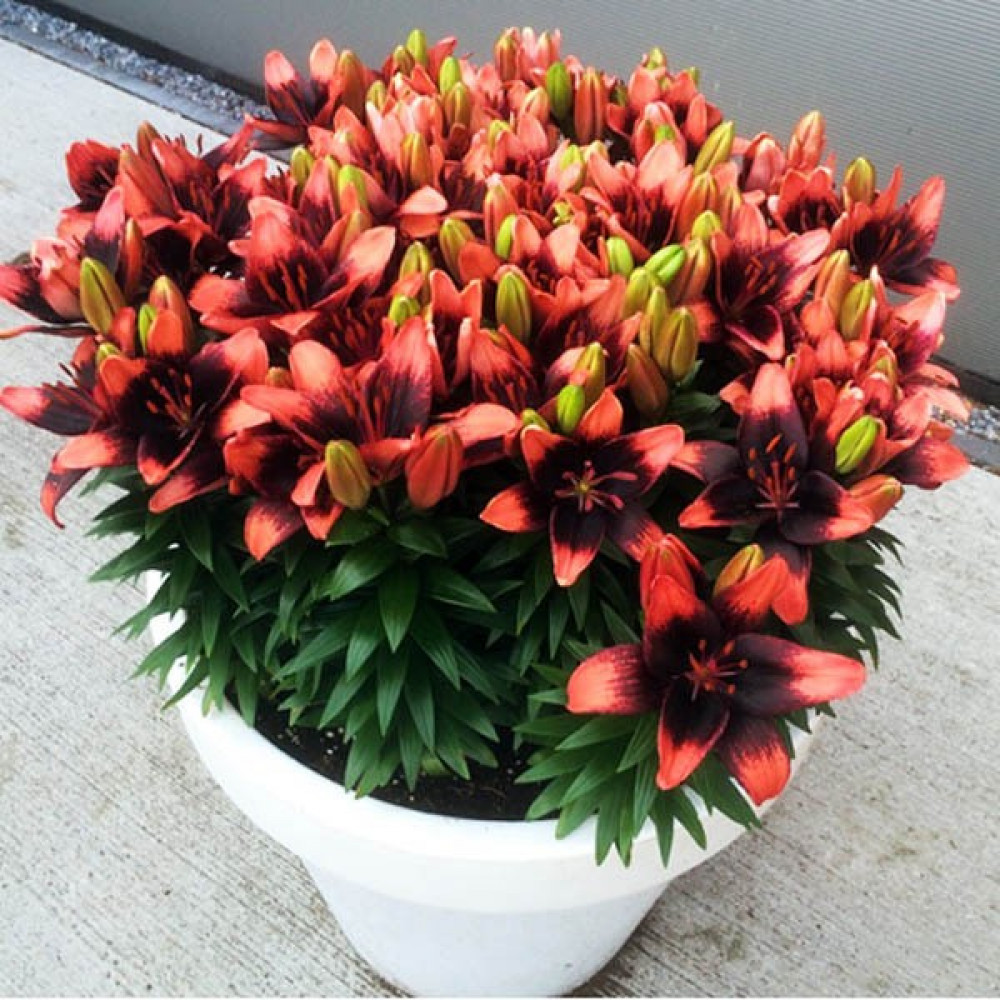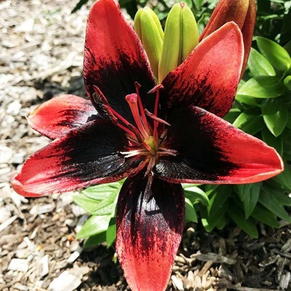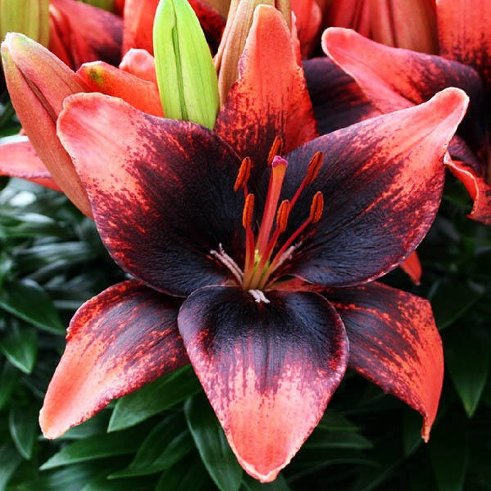 Низкорослый сорт азиатских лилий. Имеет насыщенно коралловый окрас цветков с черным крапом, усиливающимся к середине цветка. Имеет слабый сладковатый аромат.