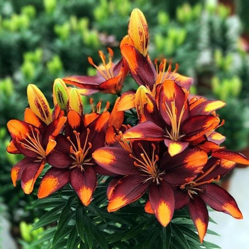 Броская и ароматная лилия, имеет небольшой размер, но при этом точно не останется незаметной. Благодаря ее практичности и небольшому размеру, легкому, не навязчивому аромату, это идеальный вариант для выращивания в домашних условиях. Лилия прекрасно выглядит и имеет отличные качества, стойко переносит заморозки и засуху, не подвержена заболеваниям. Этот прекрасный сорт отлично смотрится на клумбах, в сочетании с другими сортами. Окрас бронзово-бордовый с ярко-оранжевыми кончиками.