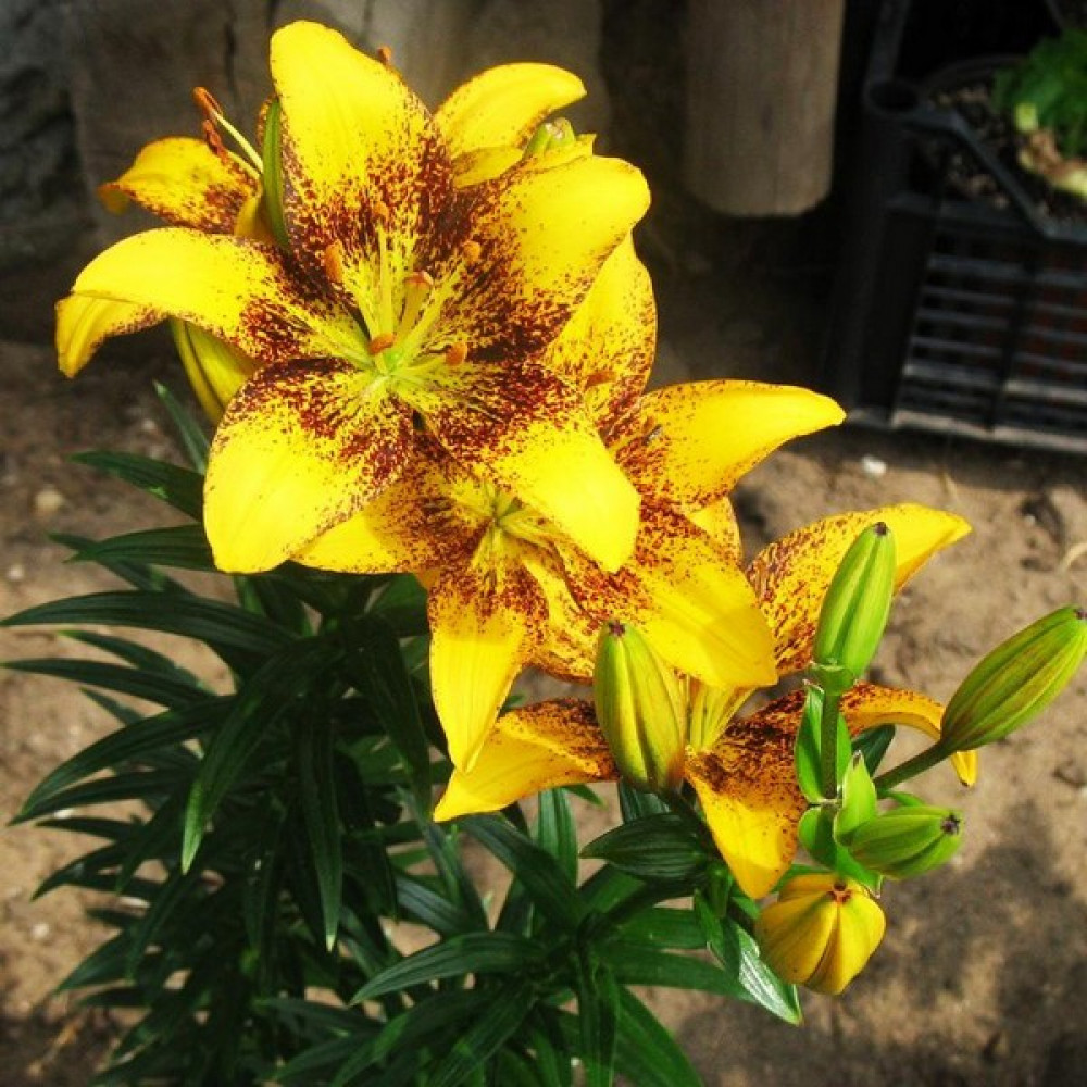 Подготовка к зиме: Процесс выкапывания луковиц лилии Yellow Brush (Йеллоу Браш) производится поэтапно: сначала подрезаются стебли луковиц, затем нужно выкопать луковицы из заранее увлажненной почвы, весь грунт с них нужно аккуратно стряхнуть. Следует внимательно осмотреть луковицы – не подгнили ли корни, нет ли высохших чешуек, затем их промывают под проточной холодной водой, чистые луковицы помещают на полчаса в дезинфицирующий раствор (в марганцовку или «Карбофос», «Максим»), затем луковички выкладывают для просушивания. И только после проведения всех вышеописанных процедур, луковицы лилий готовы для закладывания на хранение.