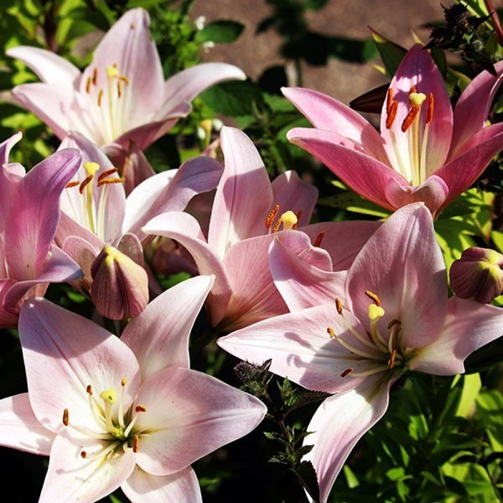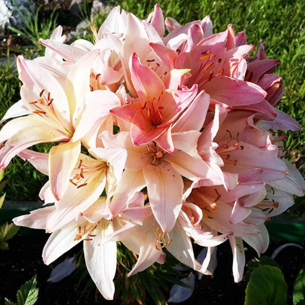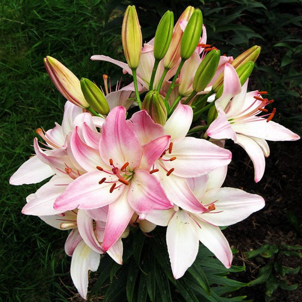Азиатский гибрид бледно-розового цвета. Лилии этого сорта склонны к срастанию стеблей, благодаря чему получается поразительный эффект - одновременное цветение до 100 цветков на одном стебле, целый букет!