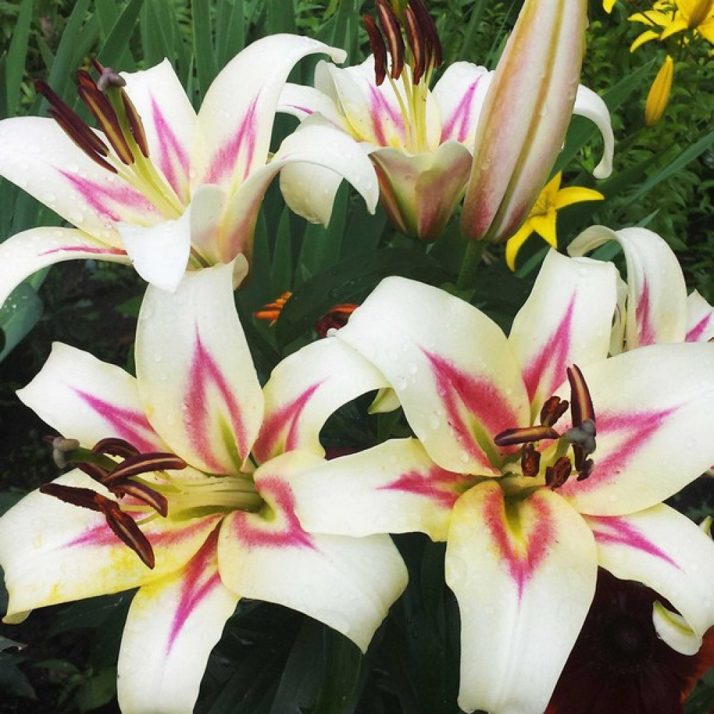 Высокорослый ОТ-гибрид, образующий множество бутонов на разветвленном цветоносе. Цветки белые с розовой звездой, крупные, до 25 сантиметров в диаметре. Лепестки слегка волнистые по краю. Цветение начинается в июне и продолжается более 4 недель. Сорт превосходно стоит в срезке. На клумбе по мере разрастания образует выразительную цветочную композицию высотой до 1 м. Лилию высаживают в рыхлую почву, куда можно добавить хвойный опад. Растение нетребовательно к солнцу и комфортно чувствует себя в полутени. Время для осенней посадки определяют по температуре почвы, которая должна остыть до +10 градусов, обычно это происходит в октябре. Рекомендованы комплексные органические удобрения для луковичных многолетников, свежая органика недопустима.