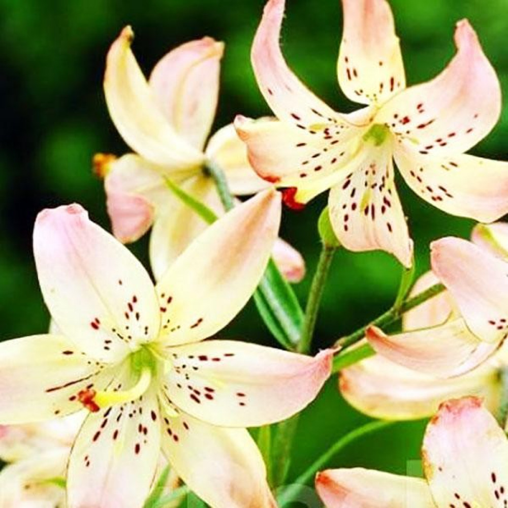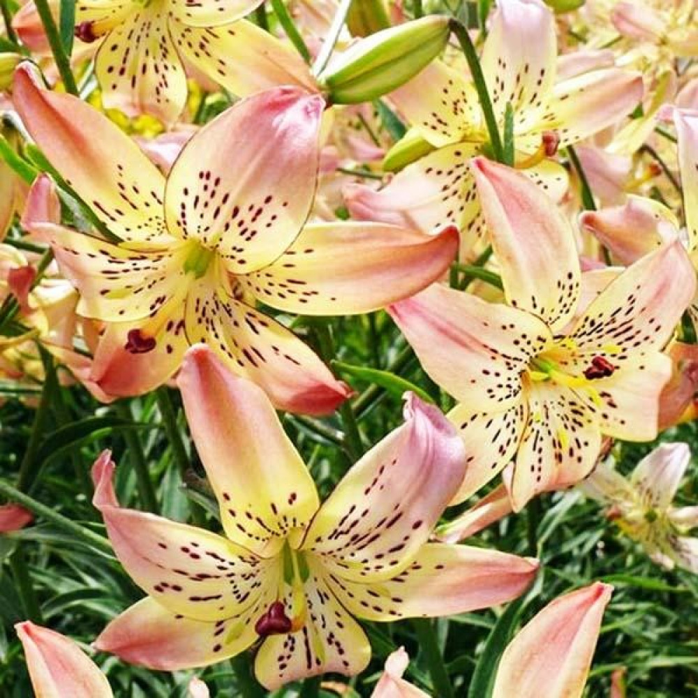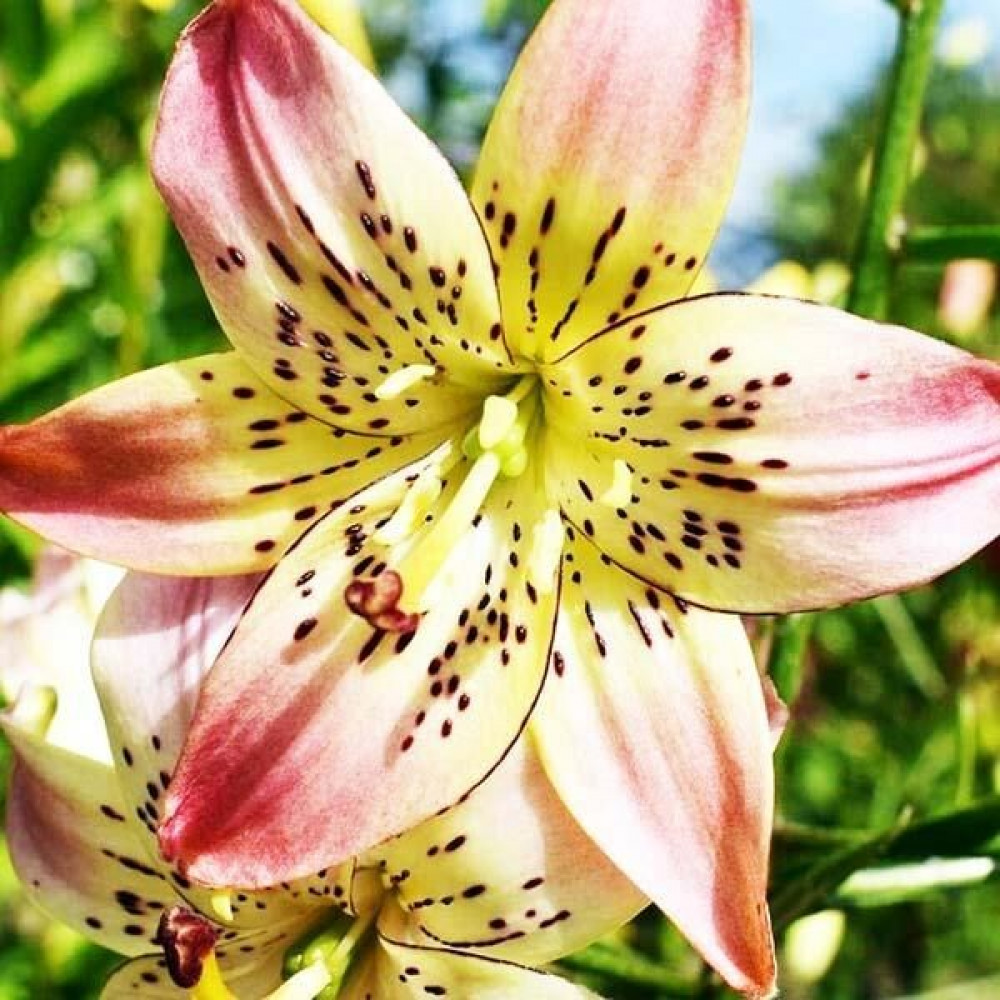 | Период цветенияиюль-август | Стандарт поставкиЛуковица в торфе | Цвет цветкарозовый с желтоватым центром и пурпурным крапом |