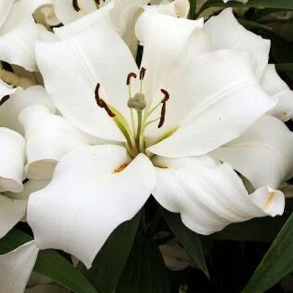 Белый. Высота 100 см, диаметр цветка до 25 см, размер луковицы 14/16.