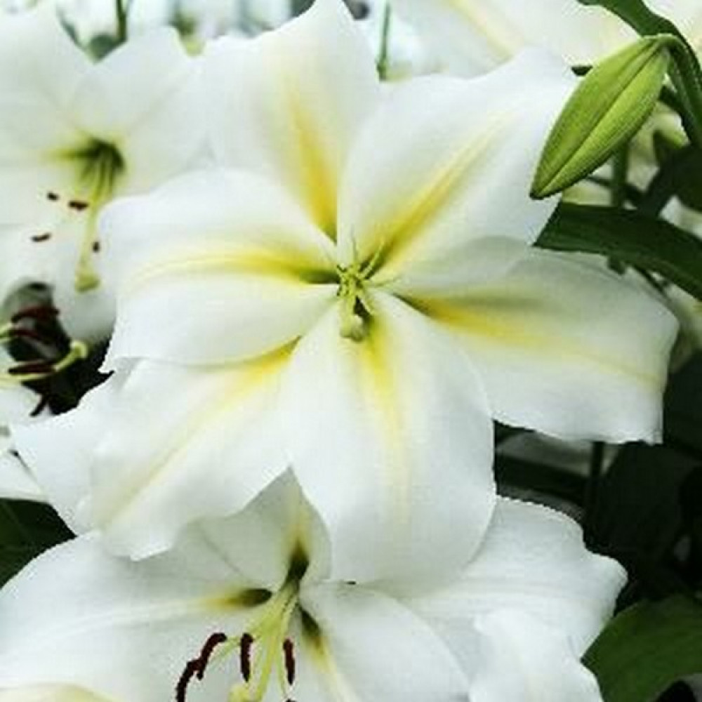 Великолепный гибрид, с огромными, душистыми чисто белыми цветками около 30 см в диаметре, стебли мощные. Вырастает до 1 метра в первый год, потом будет выше, более 2-х метров. Высота 120 см, диаметр цветка до 30 см, размер луковицы 12/14.