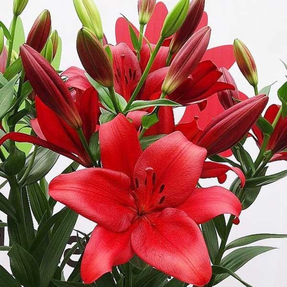 Уход за лилией: Пышных бутонов у лилий можно добиться, соблюдая обычные правила ухода: в первый год лилиям не нужна весенняя подкормка, удобрения вносятся разово за сезон, после цветения. Но это лишь в том случае, если перед посадкой вносилось удобрение. Перед началом цветения высокорослые сорта рекомендуется подвязать. После цветения засохшие бутоны удаляют. Полив умеренный: лучше не долить, чем перелить. Если цветок начал чахнуть и имеются подозрения на перелив – смешайте по столовой ложке речного песка и древесной золы, высыпьте под цветок и не поливайте ближайшую неделю. Полив лилии важно проводить под корень, старайтесь исключить попадание воды на листья, это провоцирует ожоги на солнце и распространение грибковых заболеваний.