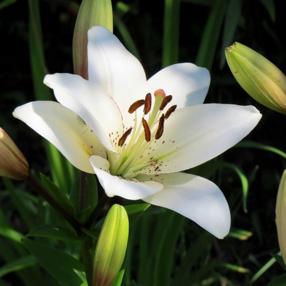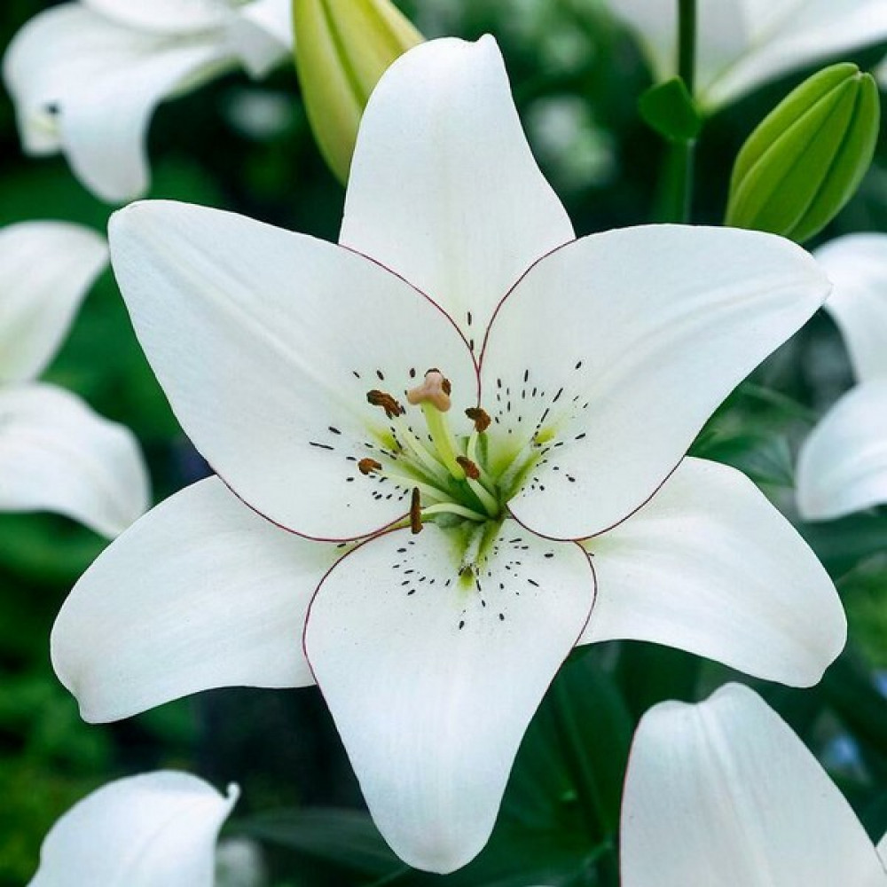 | Период цветенияиюнь-июль | Стандарт поставкиЛуковица в торфе | Цвет цветкабелый с черной обводкой по краям лепестков |