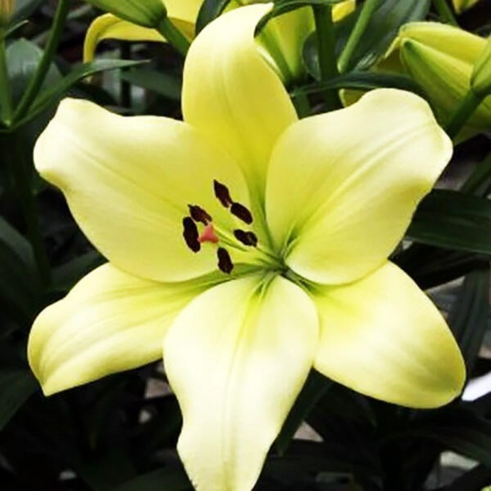 Лимонно-жёлтый цветок с зеленоватым оттенком. Примечательно, что на одном цветоносе могут одновременно находиться в распущенном состоянии цветы разного цвета, что делает этот сорт очень эффектным и декоративным. Такая яркая окраска предполагает посадку на солнечном месте, тогда лилия порадует длительным и обильным цветением.