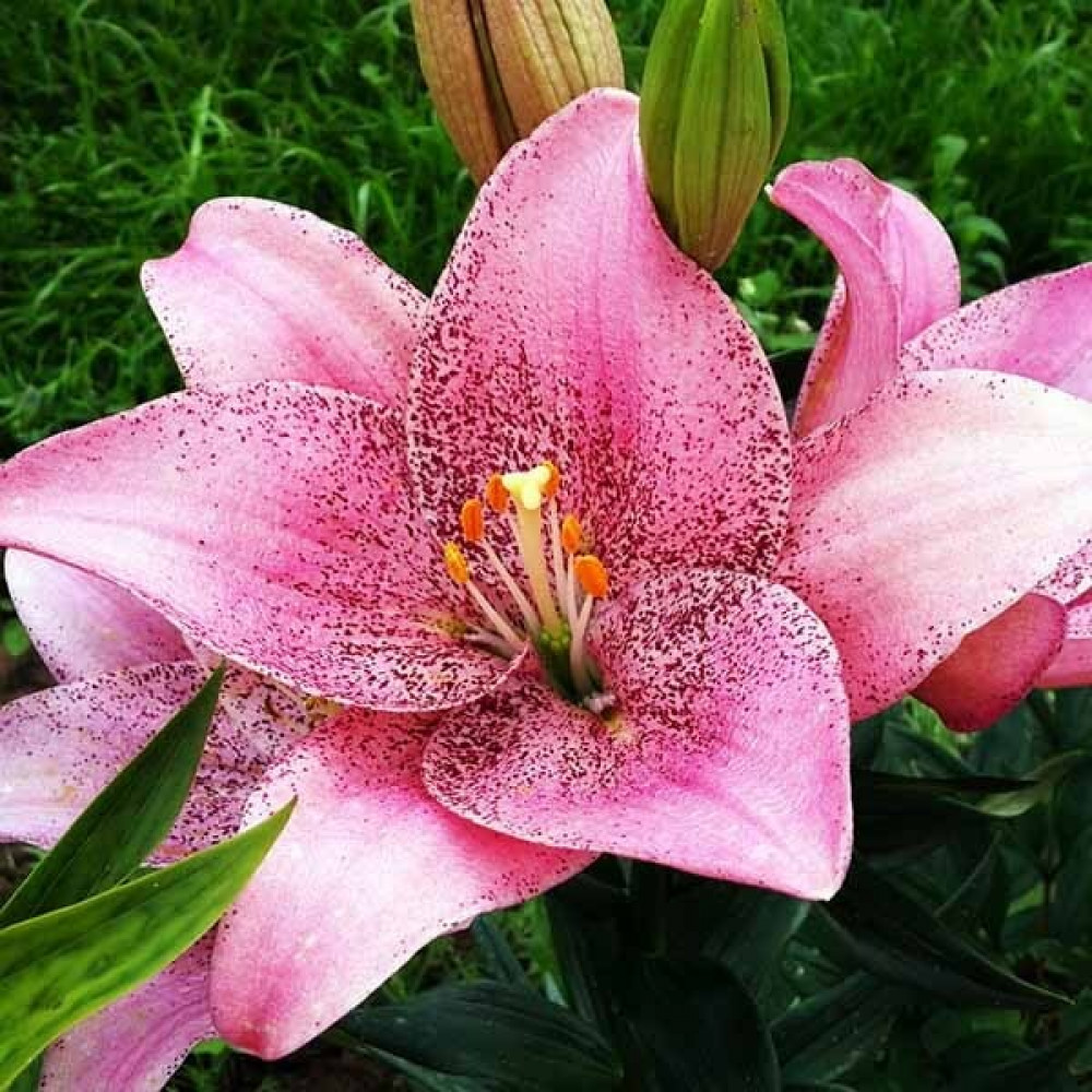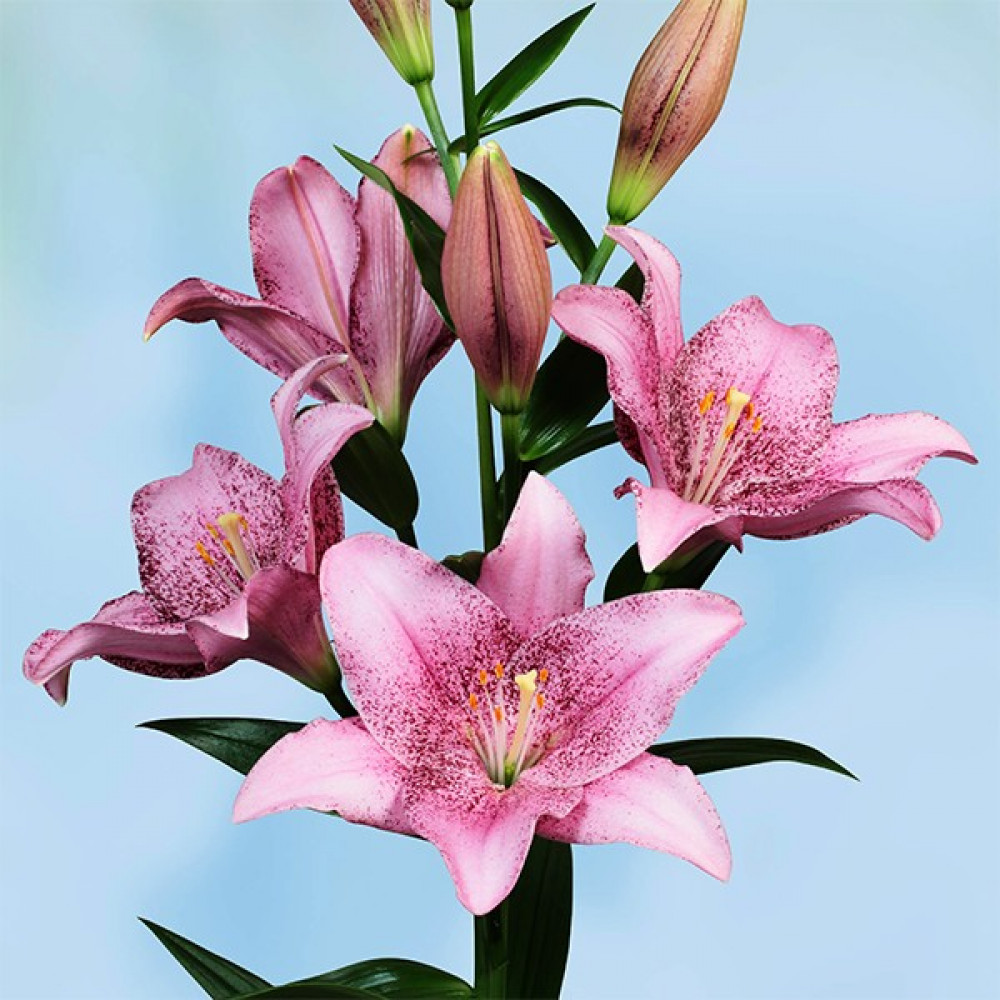 Цветок КРУПНЫЙ, нежно-розовый с сиреневым оттенком и густым темно-розовым крапом. ЛА-гибриды - выведены от скрещивания Лонгифлорум гибридов и Азиатских гибридов. От Лонгифлорум гибридов они унаследовали крупный цветок и восковидную фактуру лепестка, а от Азиатских – зимостойкость. Они прекрасно растут в различных климатических условиях обширной территории России.