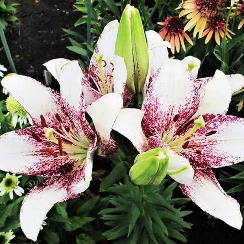 | Период цветенияИюль | Стандарт поставкиЛуковица в пакете | Цвет цветкаБелый-пурпурный |