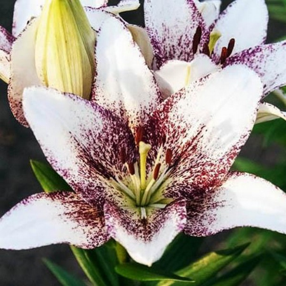 Лилия азиатская Sweet Zanika (Свит Заника)-белый с пурпурным крапом. Высота 120 см, диаметр цветка до 23 см, размер луковицы 12/14.