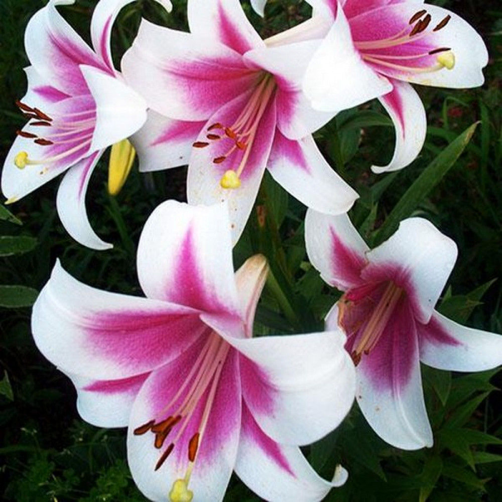 Интересная двухцветная лилия, которая отличается особой декоративностью цветков и длительным сохранением свежести в срезанном виде. Растение подходит для выращивания любым способом: под срез, в саду или горшках. Цветки достаточно крупные. Стебли крепкие, мясистые, покрытые небольшими листками темно-зеленого цвета. Окрас цветков нежно-розовый, у центра находится насыщенно-розовые темные пятна.