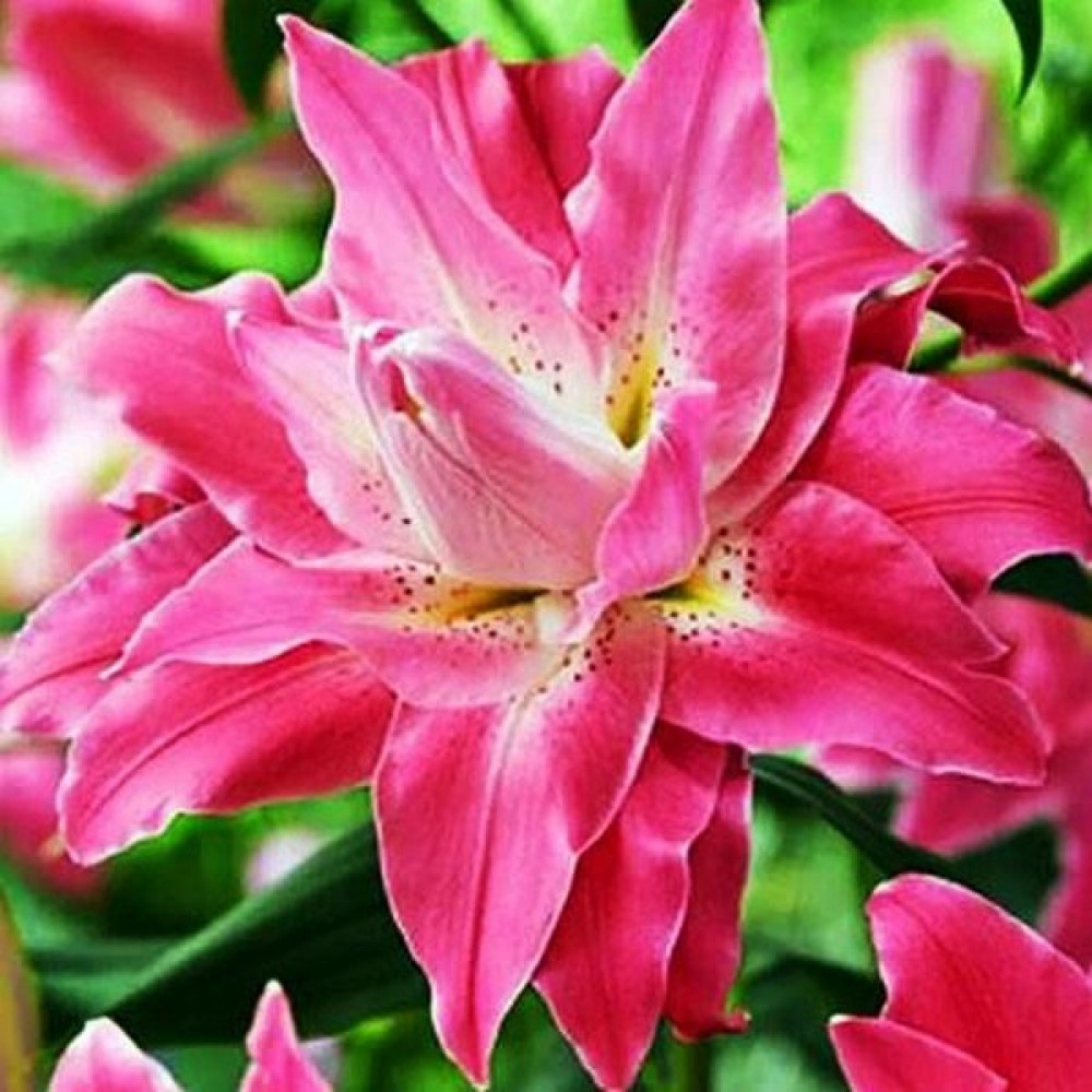 Махровый восточный гибрид лилия Dreamline (Дримлайн) порадует вас своим внешним видом и сладким ароматом. Цветки крупные, лепестки с волнистыми краями. На цветоносе располагается до 7 пышных розовых бутонов.