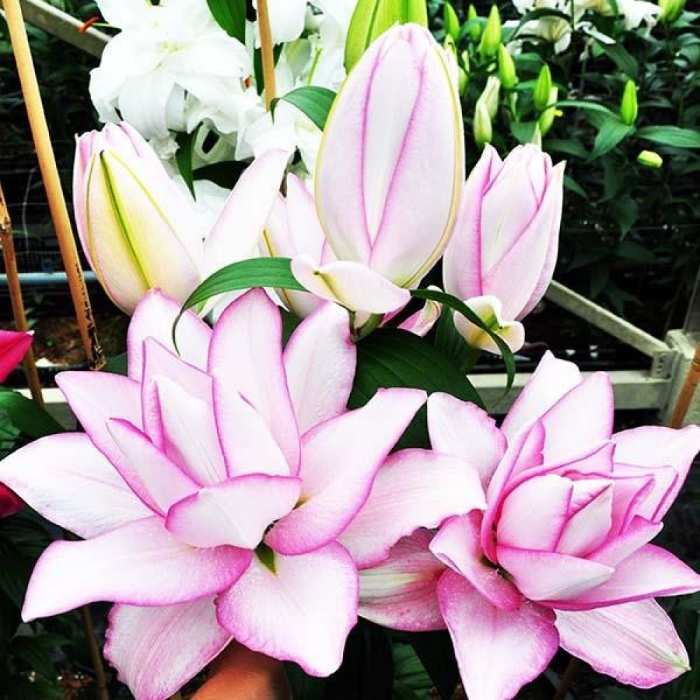 Первоклассный представитель восточных гибридов. Многочисленные белые лепестки бутона окантованы бледно-розовым тоном и не имеют пыльников, что считается преимуществом для флористов, поскольку букет не испачкает одежду пыльцой. Цветы достаточно высокие с крупными бутонами, которые отлично держат срез. Аромат подчеркивает эстетическую силу Аннушки и усиливается с заходом солнца.