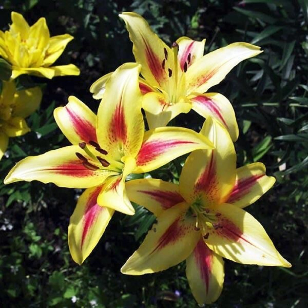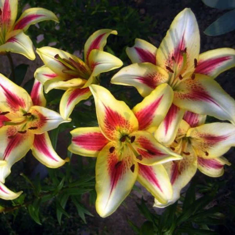 Желтая лилия с малиновыми полосами и темным крапом. Кайма ярко зеленовато-желтая. Подходит для любого цветочного оформления участков. Используют для оформления дальнего плана и в солитерных посадках. Красиво смотрятся на фоне деревьев и кустарников и в сочетании со многими однолетниками и многолетниками.