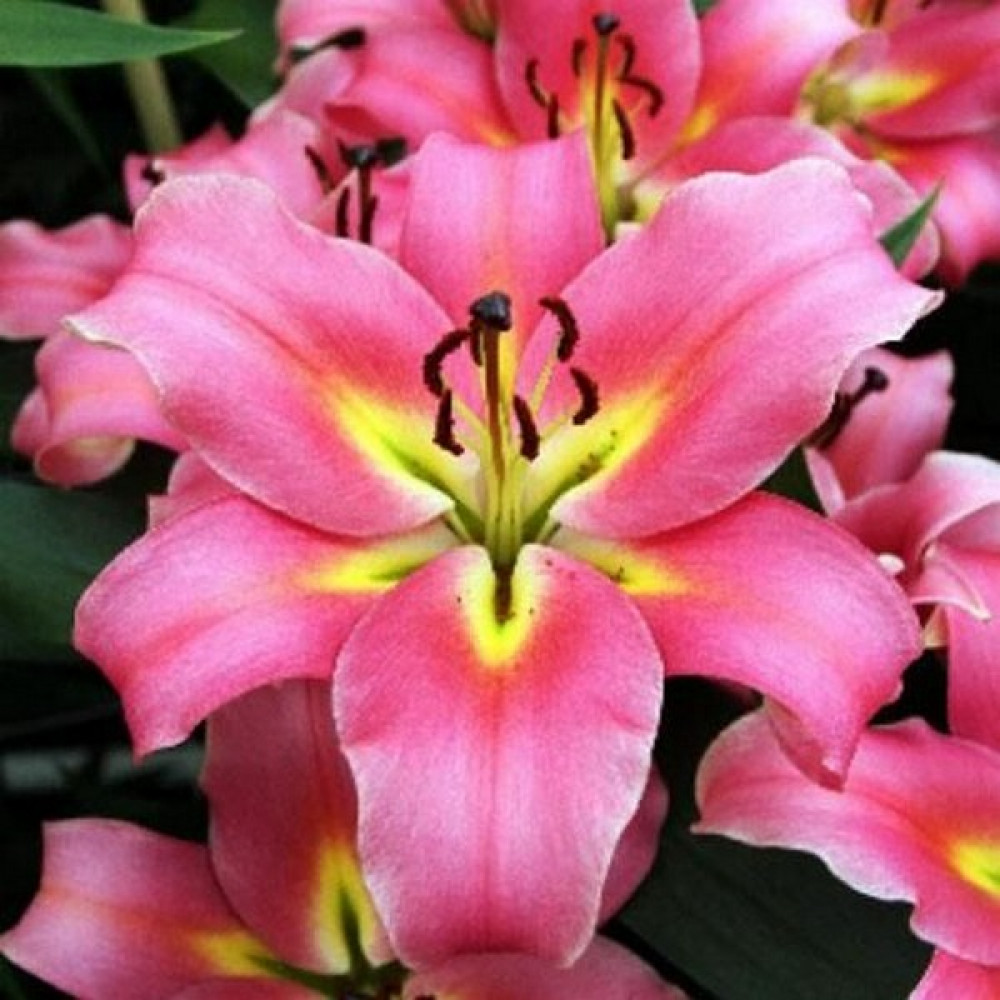 | Период цветенияиюль-август | Стандарт поставкиЛуковица в торфе | Цвет цветкаплотный розовый, центр желтый |
