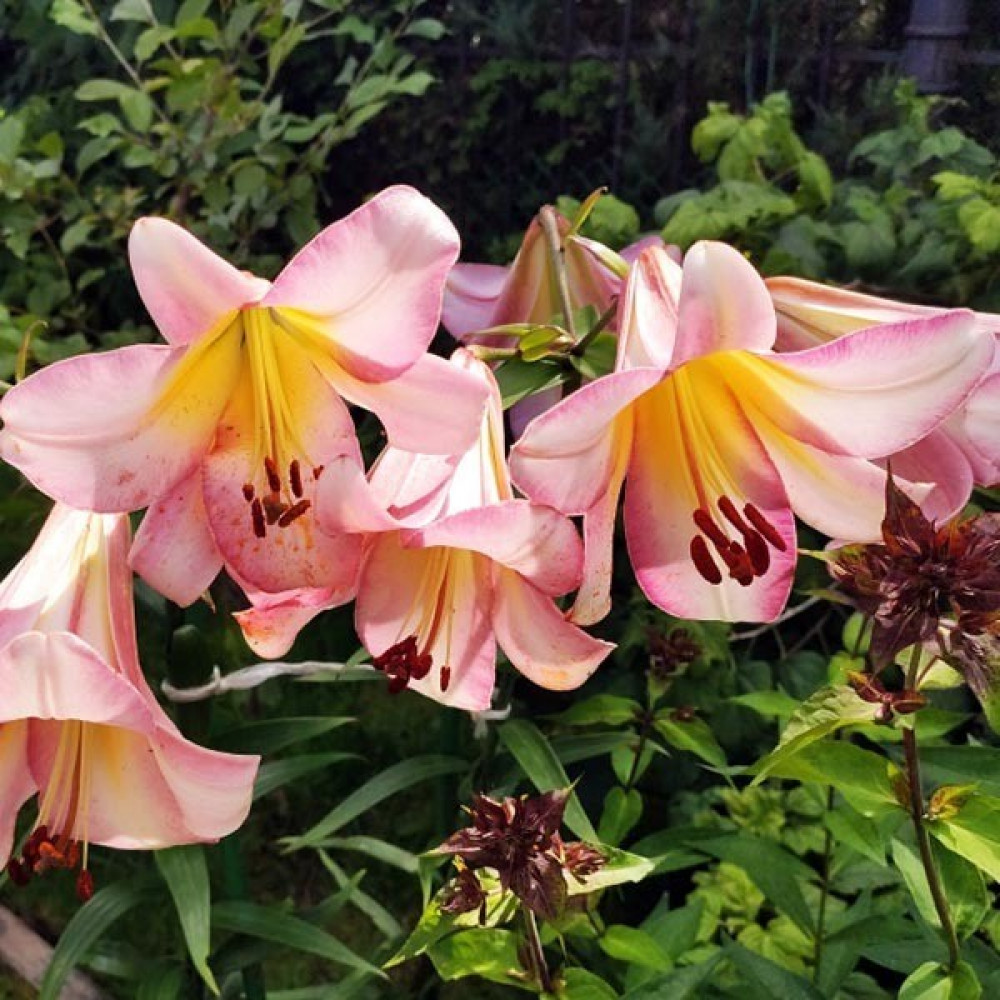 У основания такие лилии желтые, ближе к середине они становятся кремовыми. Кончики лепестков имеют нежно-розовую расцветку. Данные цветы немахровые. Их тычинки желтого цвета, а пыльники рыжеватые. Данные лилии обладают сильным и приятным запахом.