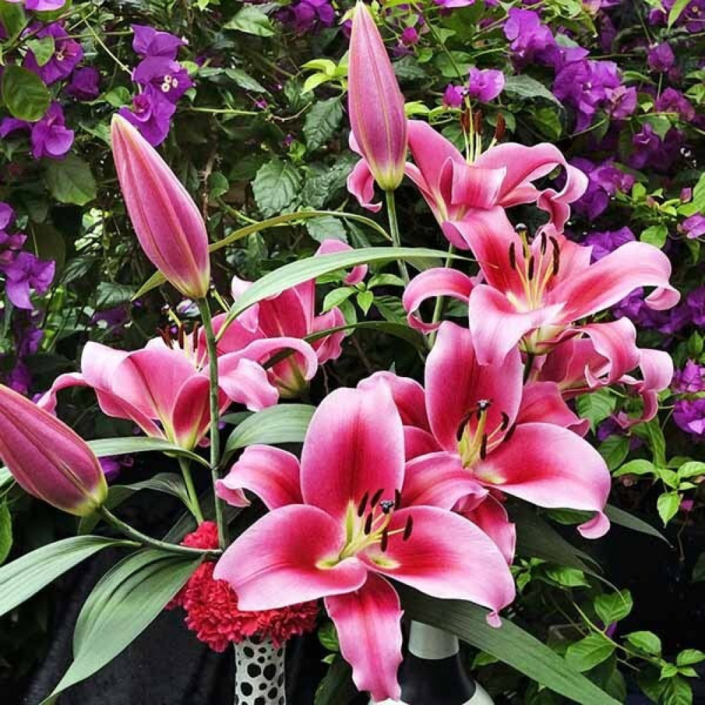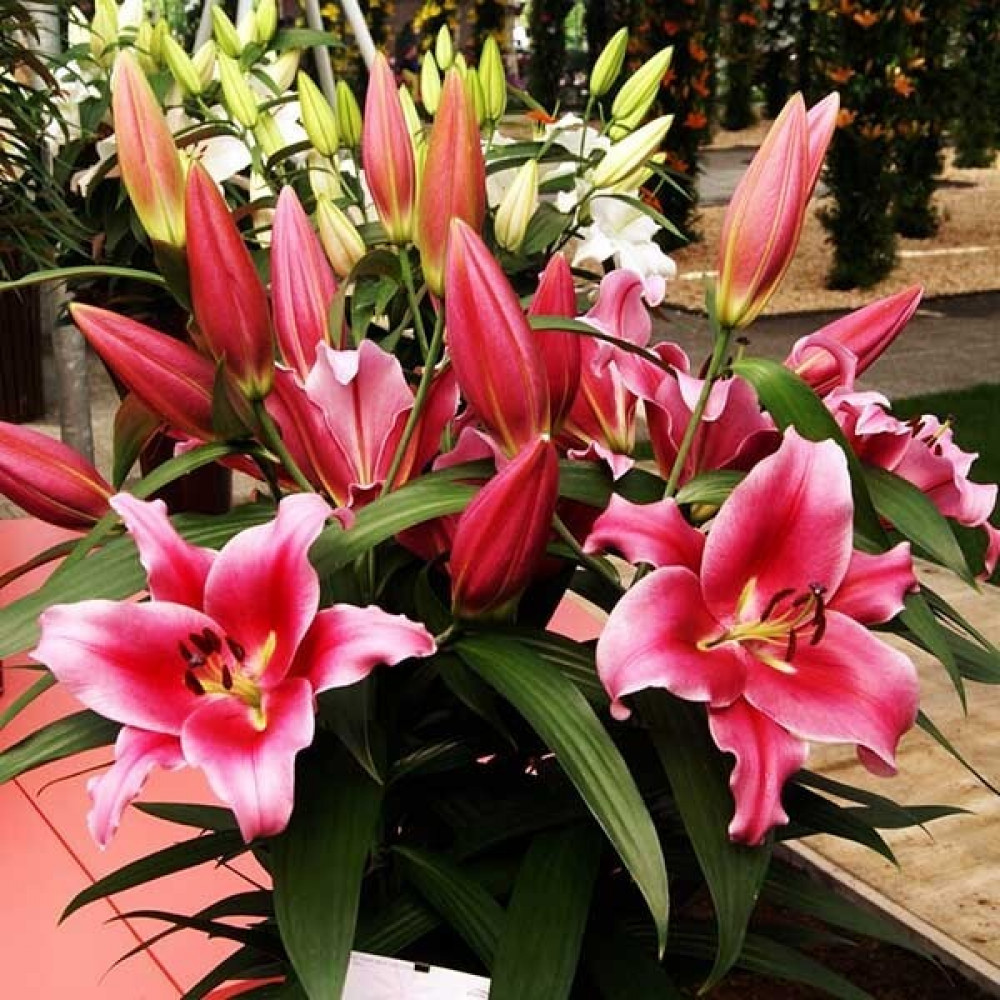 Уход за лилией: Пышных бутонов у лилий можно добиться, соблюдая обычные правила ухода: в первый год лилиям не нужна весенняя подкормка, удобрения вносятся разово за сезон, после цветения. Но это лишь в том случае, если перед посадкой вносилось удобрение. Перед началом цветения высокорослые сорта рекомендуется подвязать. После цветения засохшие бутоны удаляют. Полив умеренный: лучше не долить, чем перелить. Если цветок начал чахнуть и имеются подозрения на перелив – смешайте по столовой ложке речного песка и древесной золы, высыпьте под цветок и не поливайте ближайшую неделю. Полив лилии важно проводить под корень, старайтесь исключить попадание воды на листья, это провоцирует ожоги на солнце и распространение грибковых заболеваний.