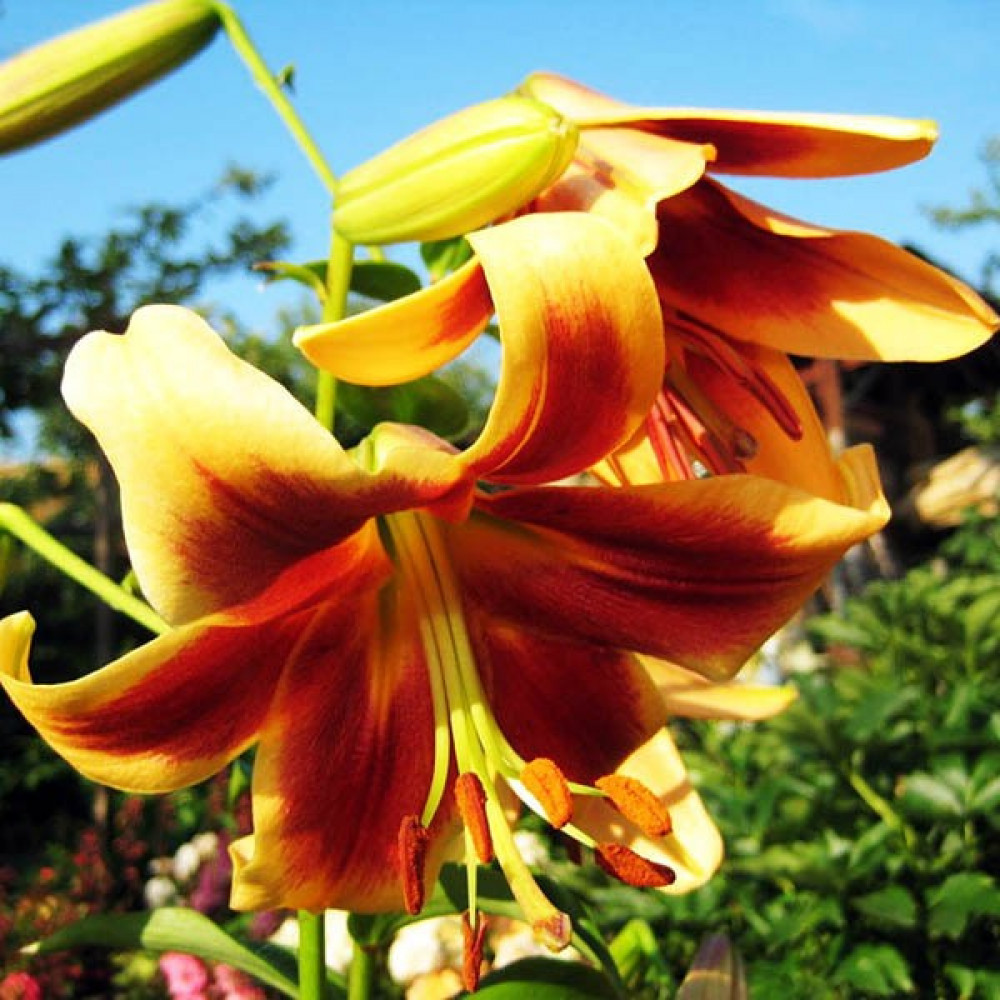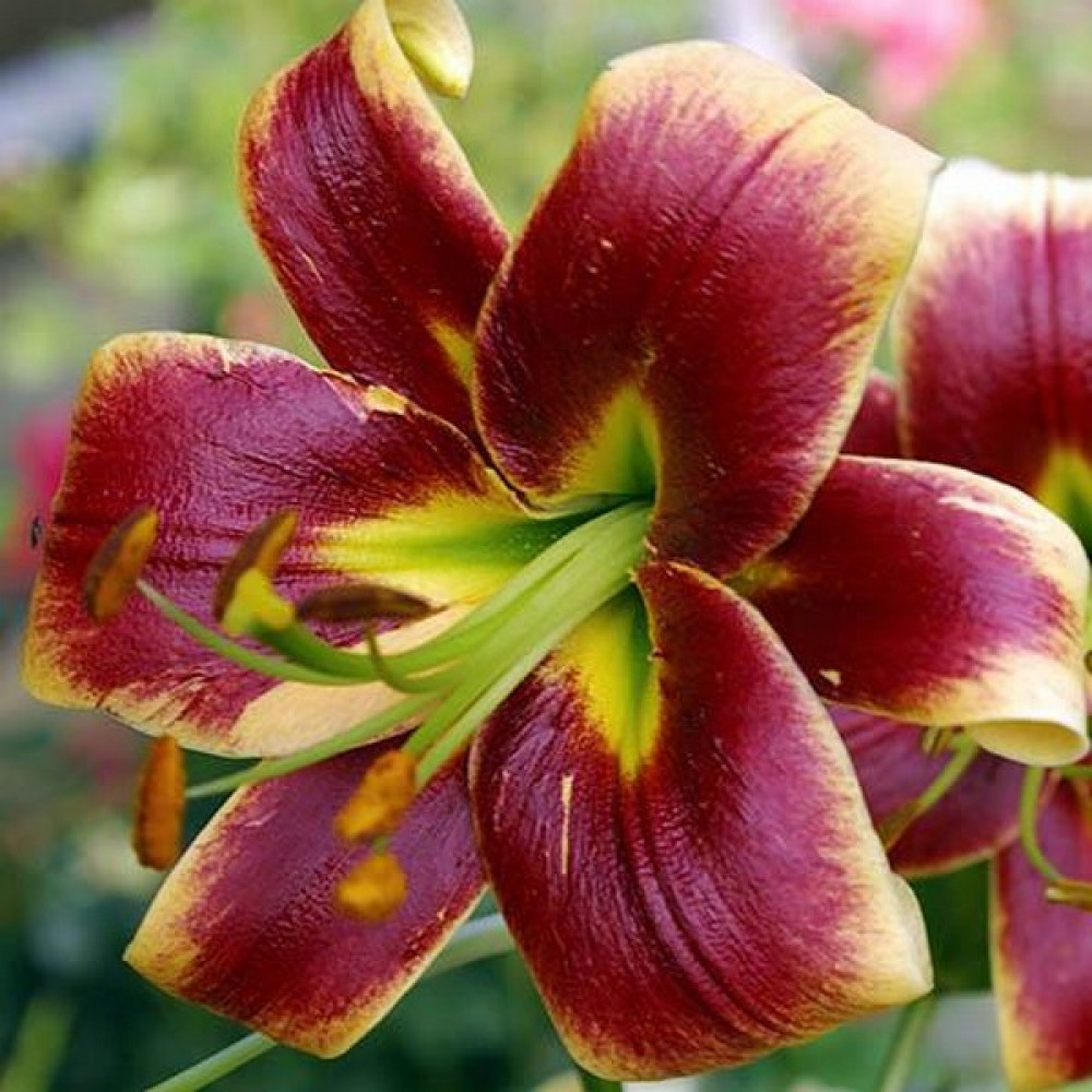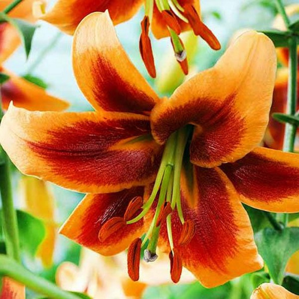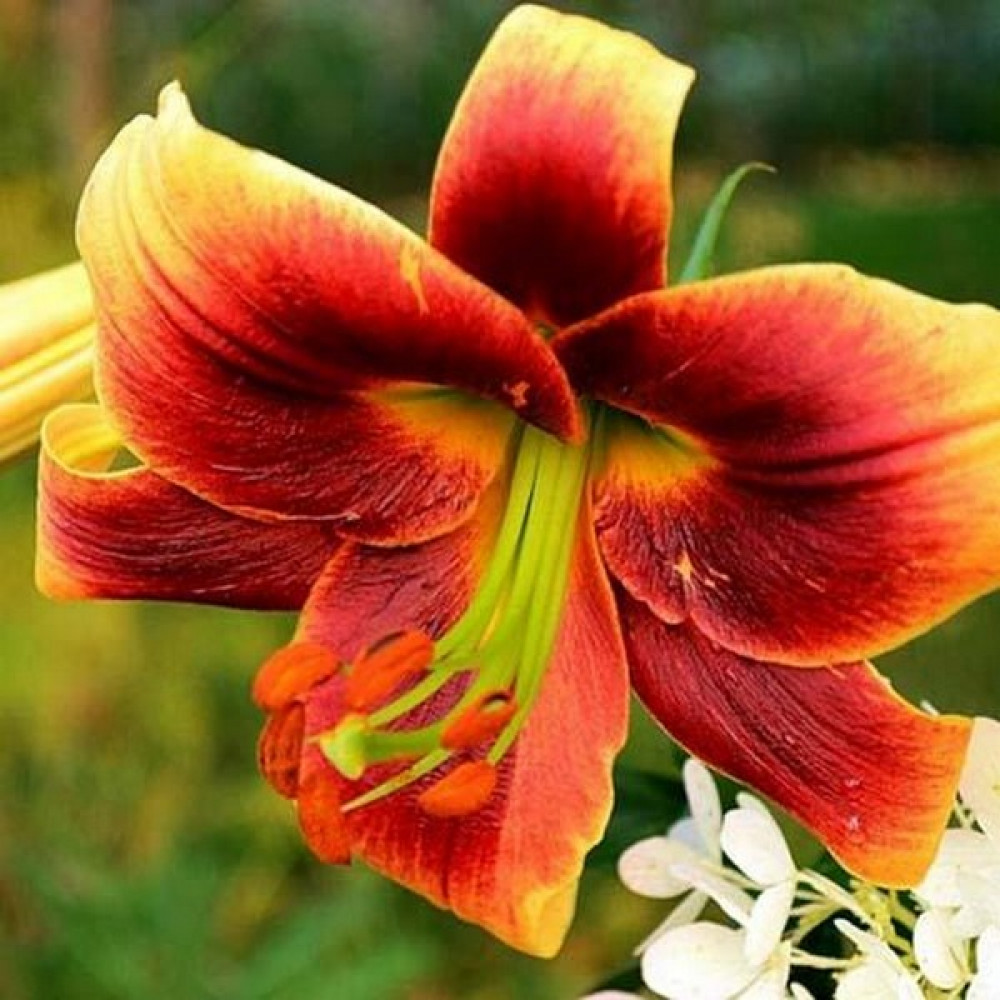 Очаровывает большими красивым цветками и нежным ароматом. Лепестки цветков насыщенного красно-оранжевого цвета с желтой каймой. Состоят из 6 лепестков. Их рекомендуется высаживать на переднем плане в цветниках, а также их можно выращивать в горшках и для срезки. Выращивать дома не рекомендуется из-за большого количества пыльцы.