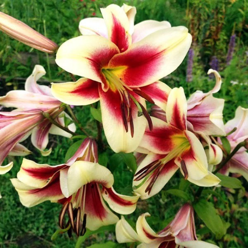 Размножение лилии: Через 3-4 года после посадки под землей образуется целое «гнездо» из 4-6 луковиц, которое мы выкапываем, разделяем и сажаем каждую луковицу отдельно. Количество образовавшихся луковиц можно легко определить по количеству стеблей.