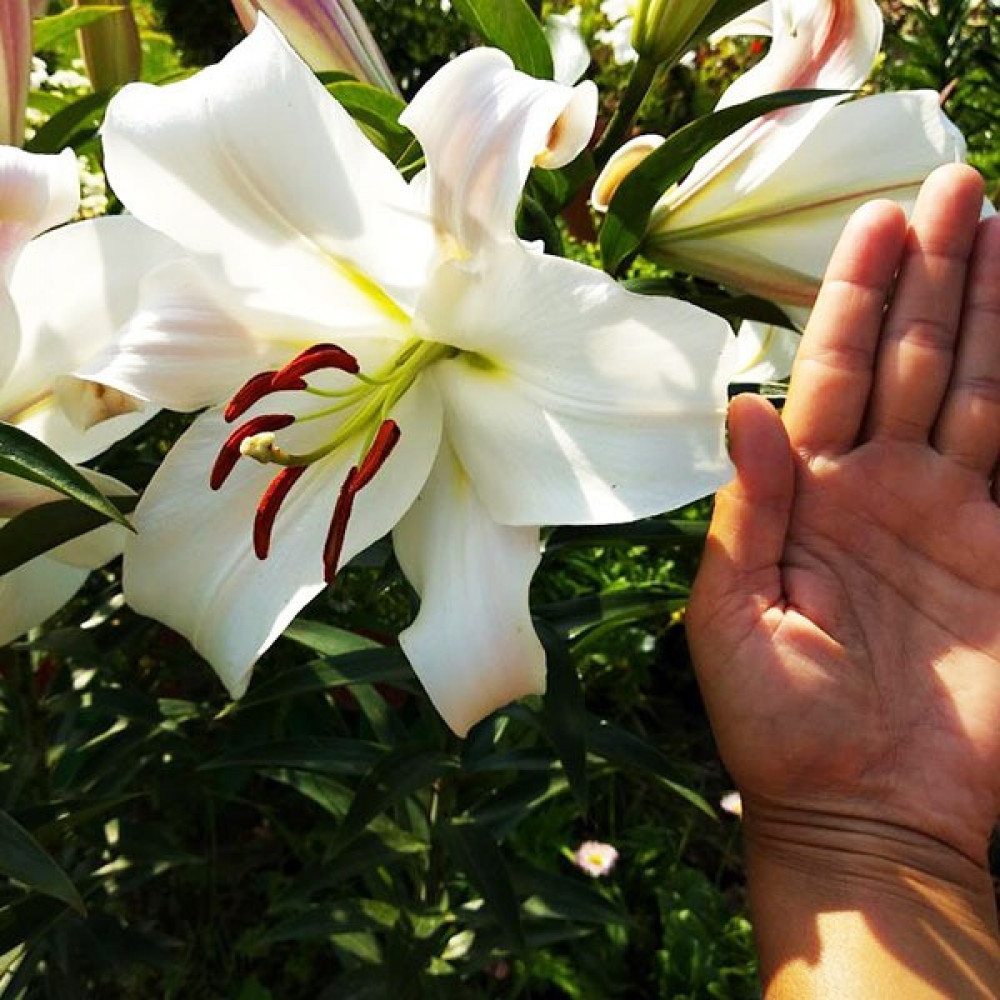 Уход за лилией: Пышных бутонов у лилий можно добиться, соблюдая обычные правила ухода: в первый год лилиям не нужна весенняя подкормка, удобрения вносятся разово за сезон, после цветения. Но это лишь в том случае, если перед посадкой вносилось удобрение. Перед началом цветения высокорослые сорта рекомендуется подвязать. После цветения засохшие бутоны удаляют. Полив умеренный: лучше не долить, чем перелить. Если цветок начал чахнуть и имеются подозрения на перелив – смешайте по столовой ложке речного песка и древесной золы, высыпьте под цветок и не поливайте ближайшую неделю. Полив лилии важно проводить под корень, старайтесь исключить попадание воды на листья, это провоцирует ожоги на солнце и распространение грибковых заболеваний.