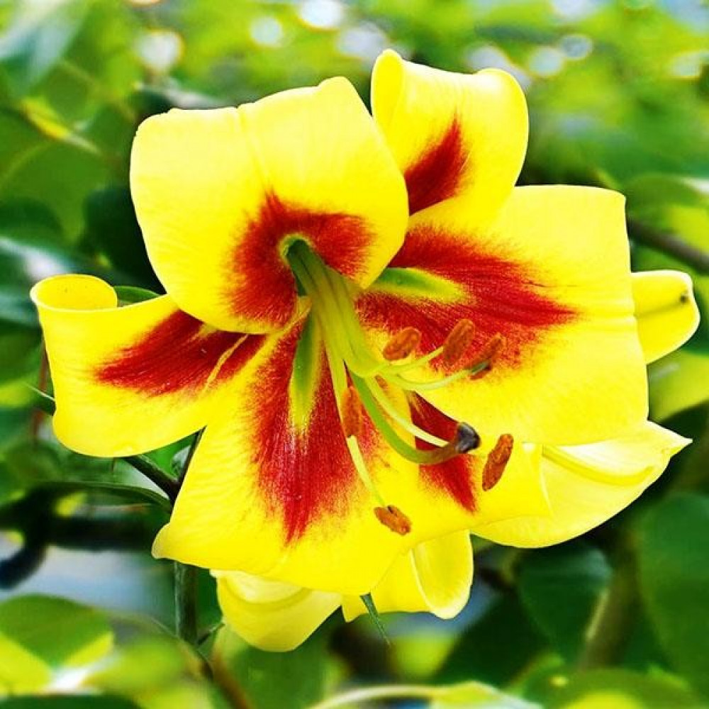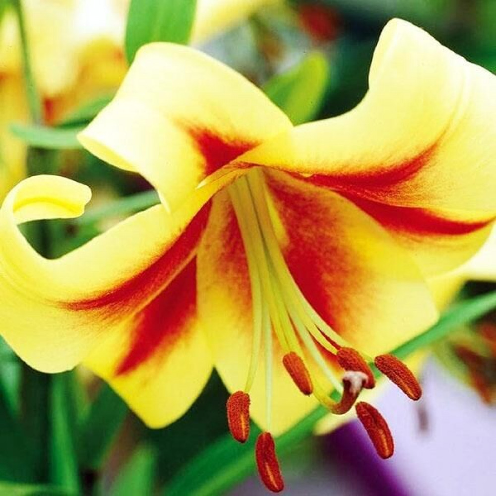 | Период цветенияиюль-август | Стандарт поставкиЛуковица в торфе | Цвет цветкакремово-жёлтый, рубиновый от центра |