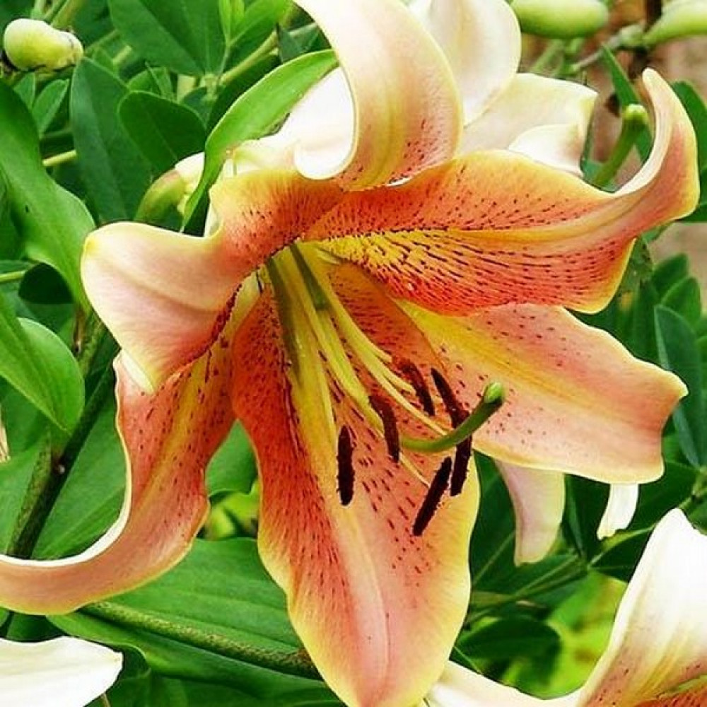 | Период цветенияиюль-август | Стандарт поставкиЛуковица в торфе | Цвет цветкасветло-абрикосовый, сердцевина желтая |