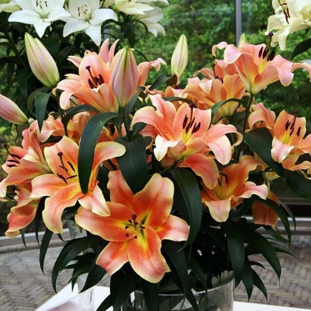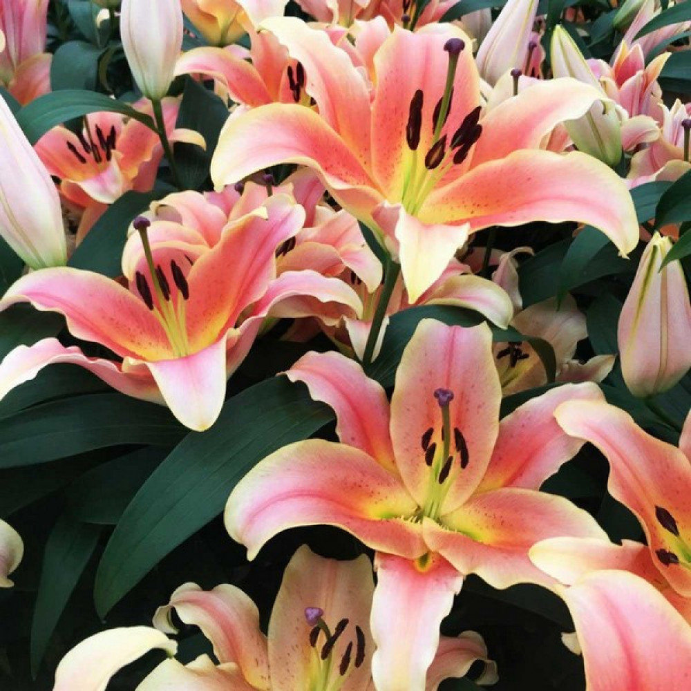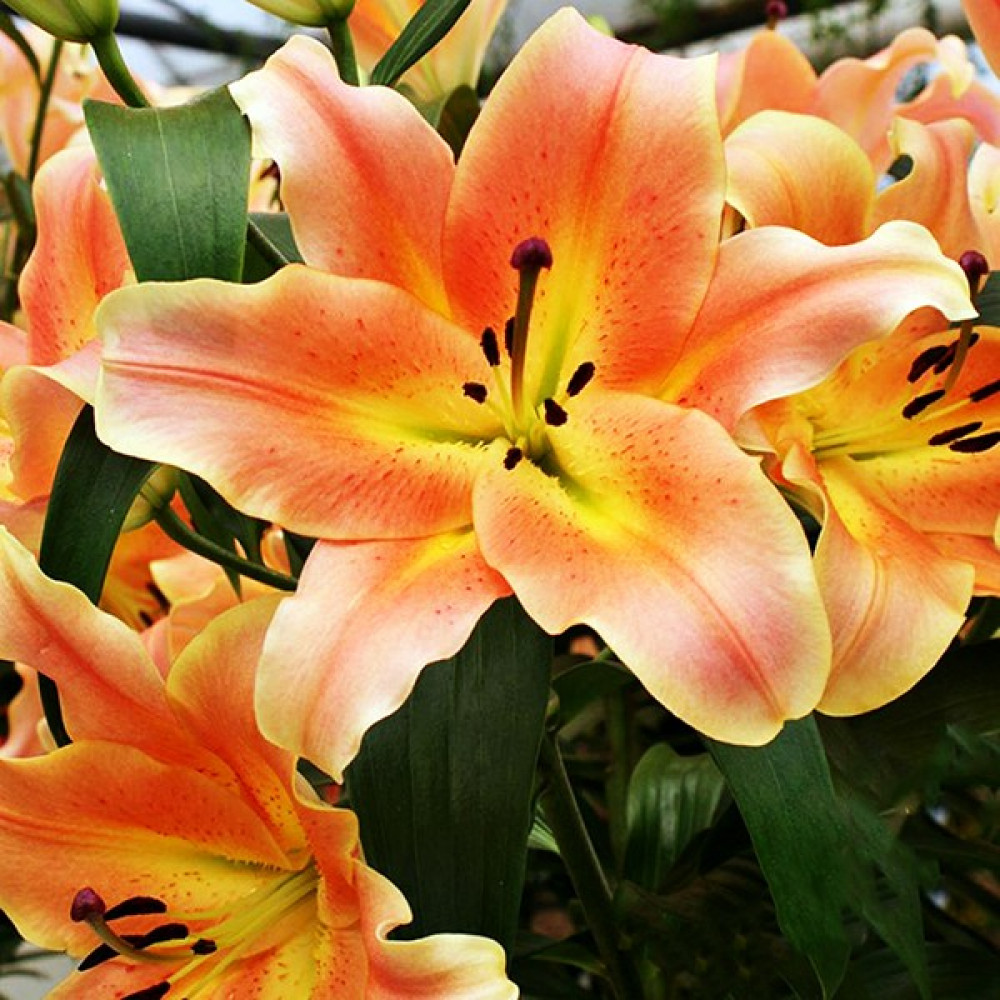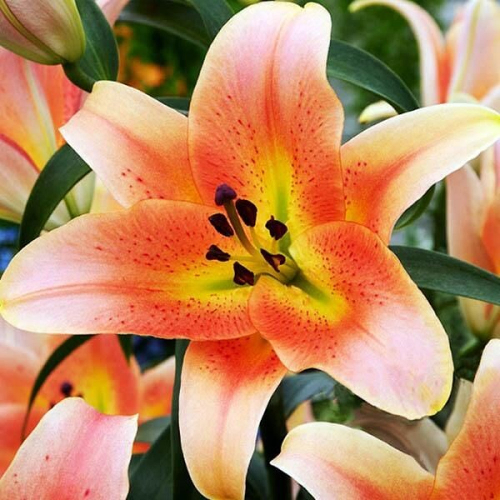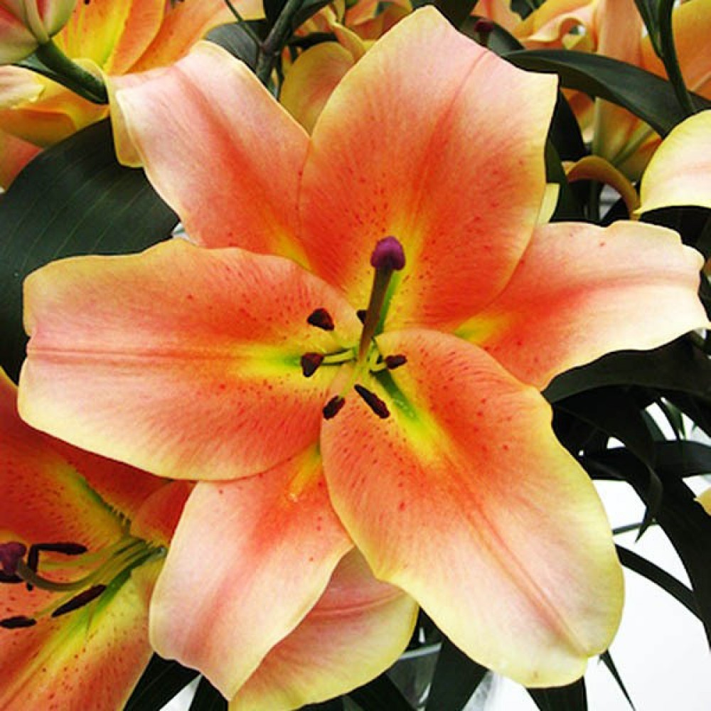 Яркая крупноцветковая лилия – желанный гость на каждом участке! Вырастить ее не составит большого труда, а красота и стойкий аромат будут наполнять сад в течение нескольких летних недель. Лепестки лососевого оттенка по краям имеют желтую оборку, также как и внутри цветка. Прекрасная лилия Zelmira (Зелмира) может расти до 5 лет на одном месте, не нуждаясь в пересадке, если вы посадите луковицы достаточно глубоко и их не повредит мороз.