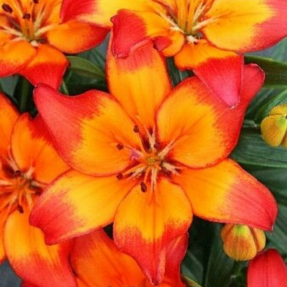 Азиатский низкорослый гибрид. Высота взрослого растения: 40 см. Цветки крупные, диаметром 16 см, жёлтый центр, розовые кончики.