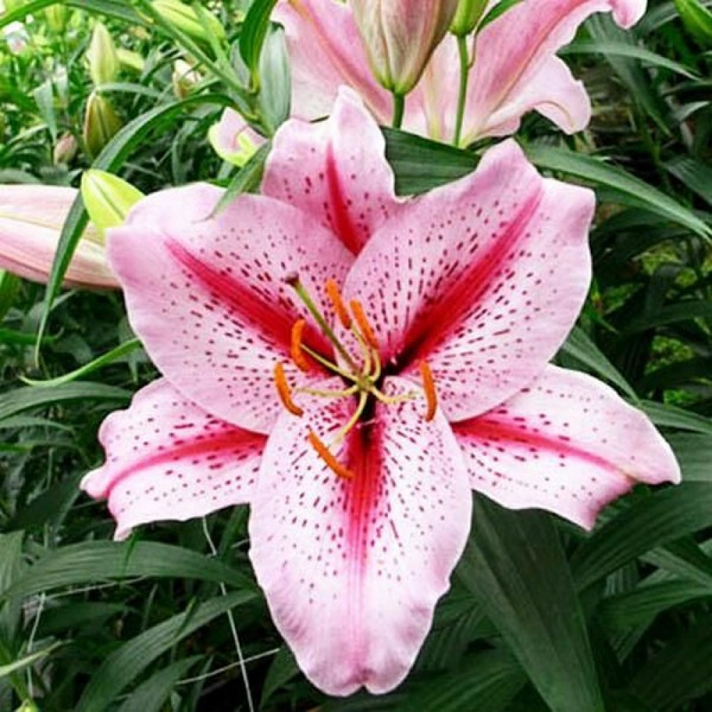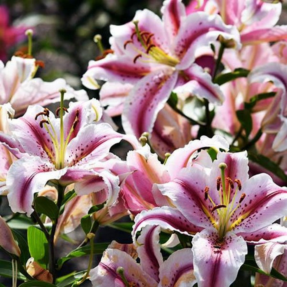 Восточные лилии создают неповторимую роскошь и обволакивают сад пьянящим ароматом. Их огромные соцветия-колокола в разы крупнее, чем у азиатских, видовых или тигровых лилий, а яркая расцветка с характерным крапом делает их самыми узнаваемыми среди остальных групп лилий.