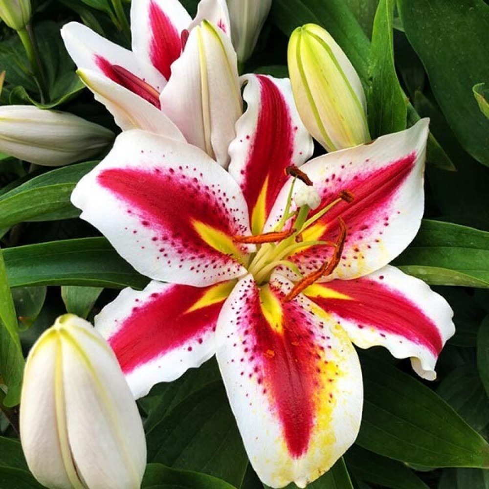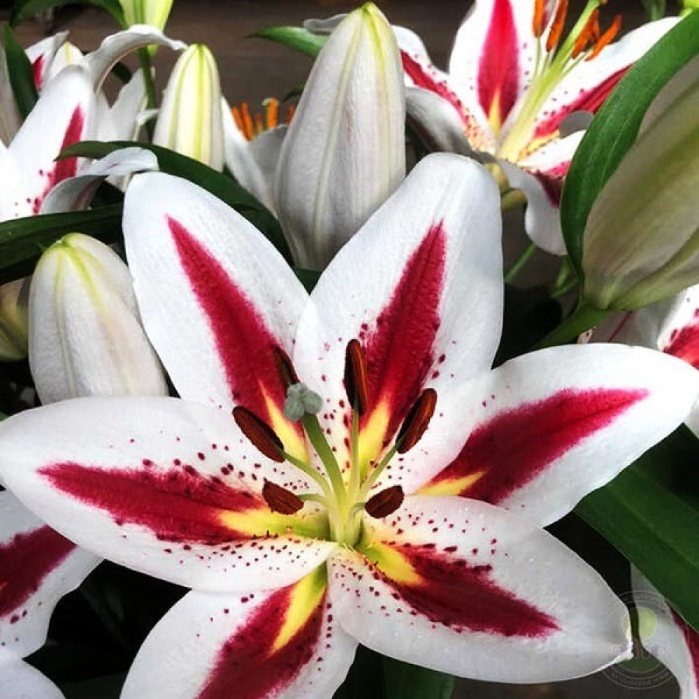 Уход за лилией: Пышных бутонов у лилий можно добиться, соблюдая обычные правила ухода: в первый год лилиям не нужна весенняя подкормка, удобрения вносятся разово за сезон, после цветения. Но это лишь в том случае, если перед посадкой вносилось удобрение. Перед началом цветения высокорослые сорта рекомендуется подвязать. После цветения засохшие бутоны удаляют. Полив умеренный: лучше не долить, чем перелить. Если цветок начал чахнуть и имеются подозрения на перелив – смешайте по столовой ложке речного песка и древесной золы, высыпьте под цветок и не поливайте ближайшую неделю. Полив лилии важно проводить под корень, старайтесь исключить попадание воды на листья, это провоцирует ожоги на солнце и распространение грибковых заболеваний.