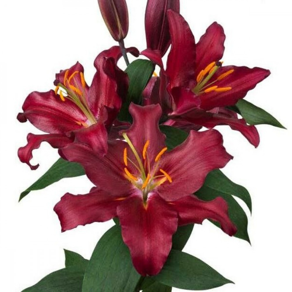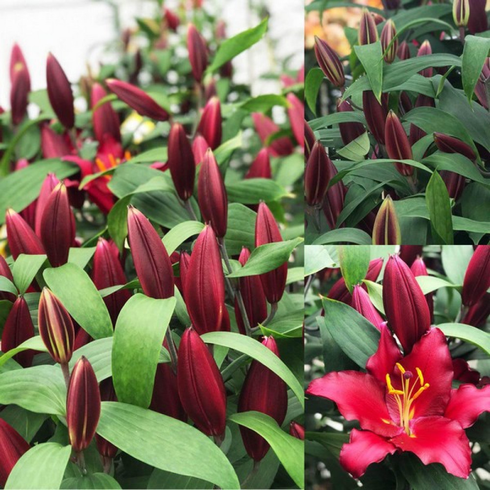 | Стандарт поставкиЛуковица в пакете | Цвет цветкаБордово-красный, глянцевый, оранжевые тычинки |
