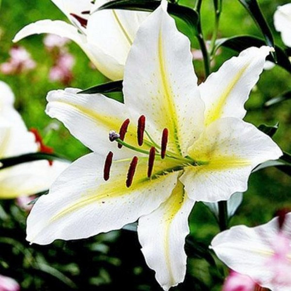 Восточные лилии создают неповторимую роскошь и обволакивают сад пьянящим ароматом. Их огромные соцветия-колокола в разы крупнее, чем у азиатских, видовых или тигровых лилий, а яркая расцветка с характерным крапом делает их самыми узнаваемыми среди остальных групп лилий.