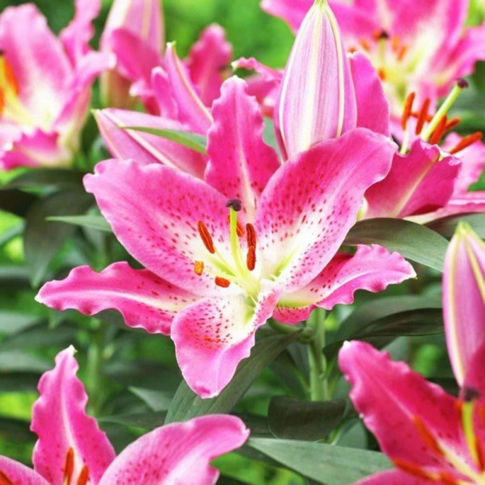Восточные лилии создают неповторимую роскошь и обволакивают сад пьянящим ароматом. Их огромные соцветия-колокола в разы крупнее, чем у азиатских, видовых или тигровых лилий, а яркая расцветка с характерным крапом делает их самыми узнаваемыми среди остальных групп лилий.