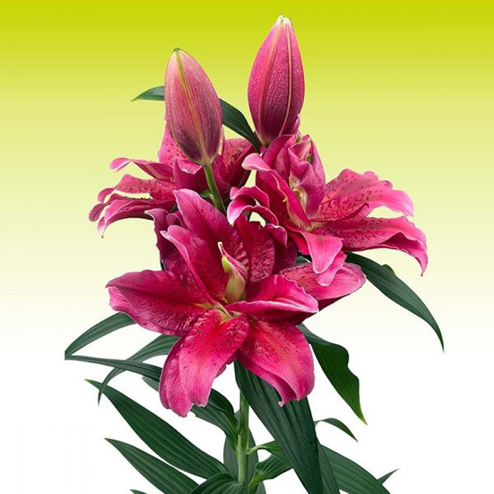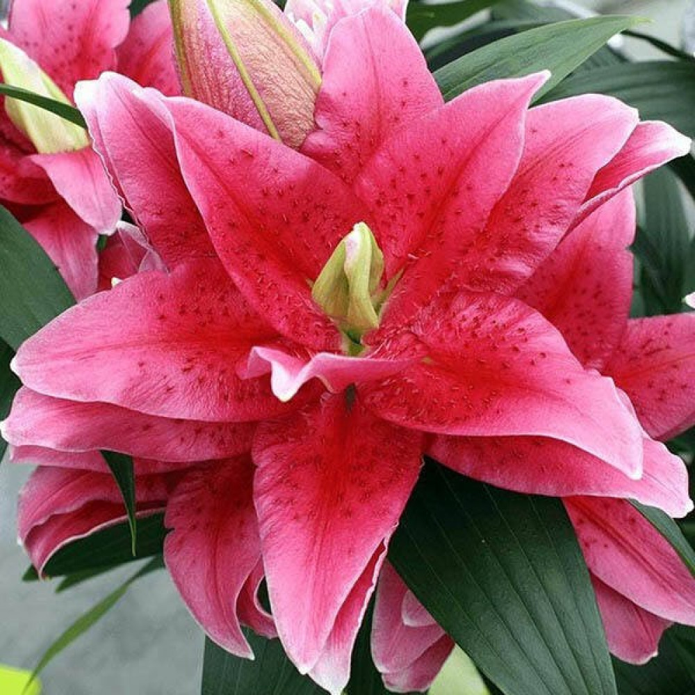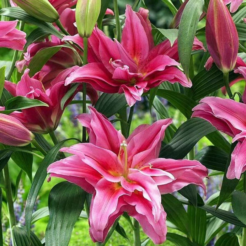 Розовидная восточная лилия поразит вас своим великолепием. Большие, махровые цветки светло-малинового оттенка распускаются в середине лета и радуют окружающих своей красотой и невероятным ярким ароматом. Цветки не производят пыльцу, поэтому сорт можно выращивать и в теплице, и дома.